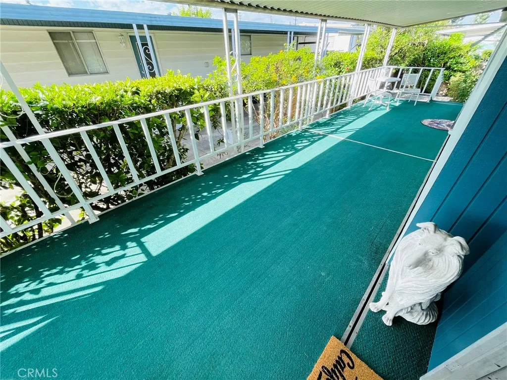 Beautiful! Move-in ready. 2 Bedroom / 2 Bathroom mobilehome located in the wonderful all-age community of New Villa Valencia Mobile Estates in the heart of Orange County. Home offers 1,344. sq. ft of living space, as well as, a large covered porch and patio for outdoor enjoyment. The manicured hedges, fruit trees, almost new exterior paint, and brick steps compliment the home's curb appeal. As you enter the home through the front door, you will immediately notice the large windows for natural lighting and an open floor plan leading to the rest of the home. Kitchen features fairly new white refrigerator, cooktop stove and dishwasher. The breakfast bar is a cozy feature to enjoy that morning cup of coffee or oatmeal with family or friends. Bedrooms have ample living space and mirrored closets. Enjoy the dual vanity in the master bathroom, tub/shower, and separate toilet room. Guest bath has single vanity and walk-in shower. BRAND NEW luxury vinyl plank flooring has been installed throughout the entire house. BRAND NEW ROOF! AND BRAND NEW WHOLE HOUSE PEX REPIPE! There is more: ceiling fans, window blinds, two car covered carport parking, and two storage cabinets.