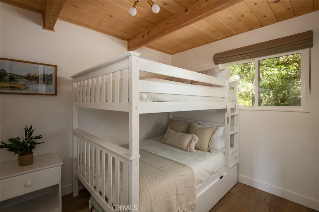 Tucked into the trees with panoramic mountain ridge views, this beautifully designed A-frame offers the perfect mix of privacy, comfort, and easy access to everything Lake Arrowhead has to offer. Fully designed by Emily LaMarque and featured in Dwell Magazine, the home blends high-end style with relaxed mountain living. The main level has an open layout where the kitchen and living room flow right out to a large deck, perfect for entertaining or catching golden hour sunsets. Two bedrooms and a full bath are on this floor, while the upstairs is a private primary suite with treetop views. Downstairs, theres a bonus living space with a built-in bar and access to a lower deck with a fire pit. Just minutes from Tavern Bay, Lake Arrowheads most sought-after beach club, and close to some of the best off-roading trails in the area. Youre also only 10 minutes from the Village, where you can grab food, shop, and enjoy weekend events. Currently a successful short-term rental, this home is move-in ready.