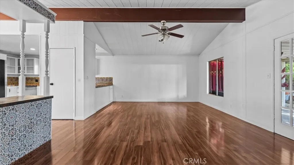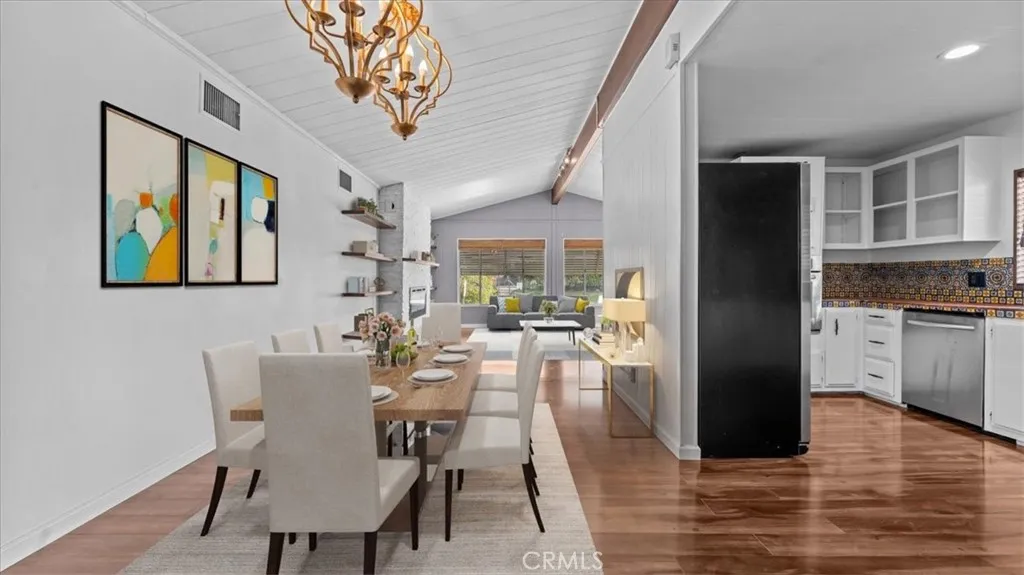 Step into a modern retreat thoughtfully designed for the way you live today. This tastefully updated ranch-style residence offers approximately 1,700 square feet of single-level living space, featuring two generous bedrooms and two pristine bathrooms. Enter into a luminous living room anchored by an electric fireplace and sleek floating shelves, a stylish yet inviting space for both relaxation and entertaining. Vaulted ceilings with exposed beam details draw the eye upward, while rich luxury vinyl flooring flows seamlessly throughout, uniting the interiors with quiet elegance. The open-concept chefs kitchen dazzles with stainless appliances, clean-lined cabinetry, and ample counter space, ready for weekday meals, weekend gatherings, or elevated casual entertaining. Just steps away lies a spacious family room whose flexible layout invites movie nights, an at-home office, or simply comfortable family downtime. Both bedrooms offer thoughtfully proportioned comfort and closet space, while the remodeled baths deliver contemporary luxury with refined finishes and timeless appeal. Slide through to your entertainer's patio and discover a backyard sanctuary primed for alfresco brunches, starlit cocktails, or quiet morning coffee with your favorite companion. A two-car attached garage with direct access means that every day is effortless. Situated in a highly desirable foothill enclave of Upland, this home offers unmistakable lifestyle perks. Trails for walking, running, or biking are right at your fingertips via the nearby Pacific Electric Trail, a well-established paved route that