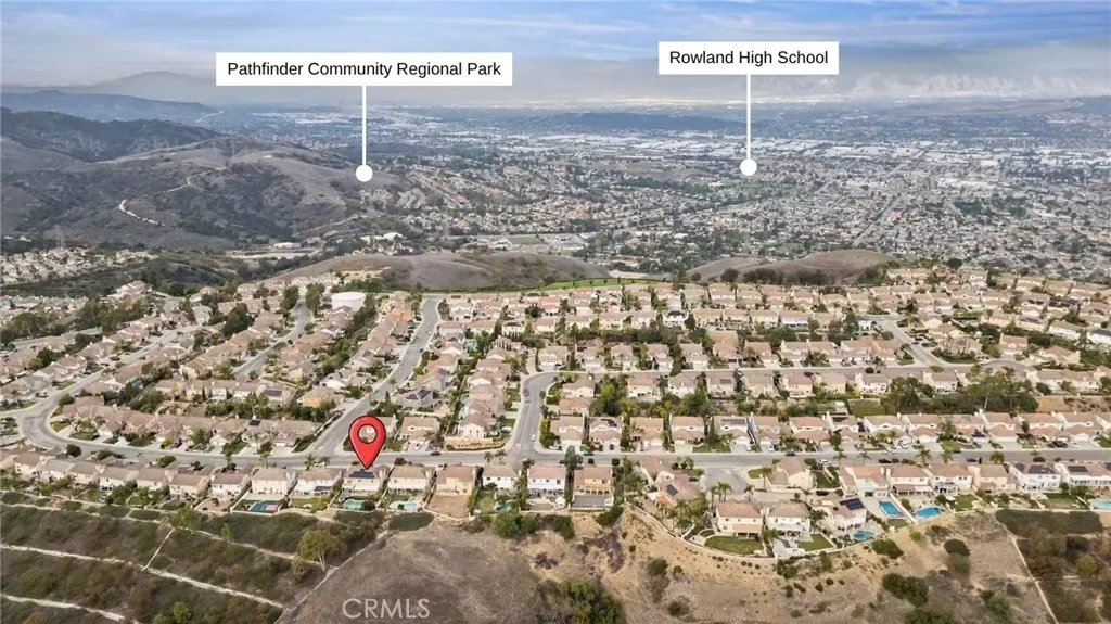 Perched in the desirable Vantage Pointe community of Rowland Heights, this expansive view home offers 6 bedrooms, 5 bathrooms and approx. 3,551 sq.ft. of living space on an oversized ~16,500+ sq.ft. lot. Thoughtfully updated over the years, the interior features double-door entry, high ceilings, crown molding, recessed lighting, plantation shutters and beautiful wood flooring that flows through the main living areas. The flexible floor plan includes two bedrooms and two bathrooms on the main level, including a generous ensuite that can function as a guest or multi-generational suite. The remodeled kitchen opens to the family room and showcases quartz countertops, resurfaced cabinetry, stainless steel appliances and a built-in KitchenAid refrigerator. Upstairs youll find four additional bedrooms and three bathrooms, highlighted by a spacious primary suite with double-door entry, upgraded spa-style bath, and a private balcony capturing sweeping city-lights views. The resort-style backyard is ideal for entertaining, offering a sparkling pool and spa, built-in BBQ, covered patio and lush palms. On clear evenings, you can relax in the yard or on the primary balcony and watch the Disneyland fireworks light up the Orange County skyline. Energy-conscious features such as solar panels and an electric-car charger add everyday convenience, while the location puts you close to parks, markets, shopping, the Rowland Heights Community Center, and easy access to the 60 and 57 freeways. Solar panel is leased.