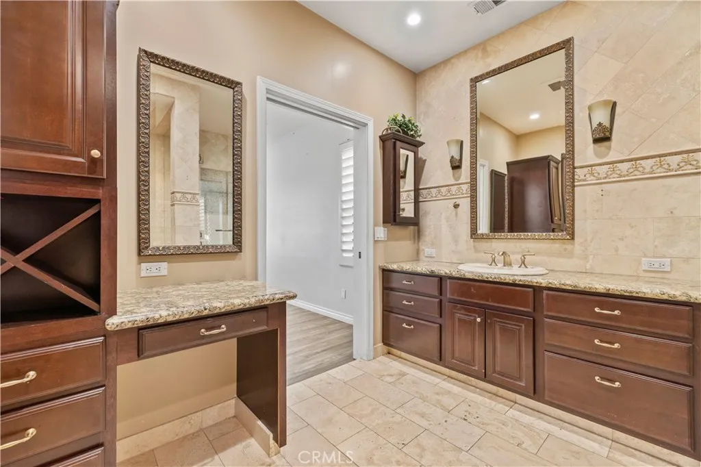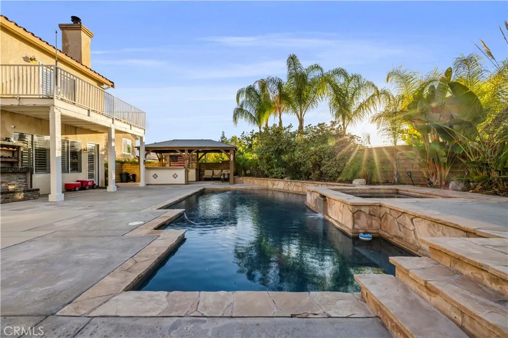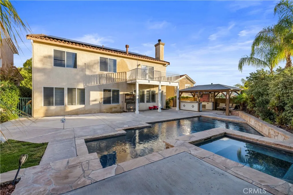 Beautiful Miramonte POOL Home in the Heart of Santa Clarita! This incredible property offers PAID solar, no HOA, and no Mello-Roos, along with nearly 3,200 Sq.Ft. of living space. The home boasts 4 bedrooms, 4 bathrooms, a spacious loft, dual master bedrooms, and a detached casita that can easily be converted into an ADU or guest house. Conveniently, one full bedroom and bathroom are located downstairsperfect for guests or multi-generational living. Upon entering, youll immediately notice the new vinyl flooring, plantation shutters, recessed lighting, fresh paint, and thoughtful upgrades throughout. The massive chefs kitchen is designed for functionality and style, offering abundant storage, granite countertops, a double oven, cooktop, and a walk-in pantry. The dining area seamlessly opens to the inviting family room with a cozy fireplace, making it an ideal gathering space. Upstairs, youll find three spacious bedrooms and a large loft that can accommodate a game room, home office, or family retreat. The primary suite features a fireplace, spa-like ensuite bathroom with a jetted tub, and a generous walk-in closet. A secondary bedroom also includes its own updated ensuite bathroom with a walk-in shower heated travertine floors, vanity, plenty of storage, and a spacious walk-in closet. Step outside to your own private oasis. This entertainers backyard features a sparkling pool, spa, outdoor gazebo/bar, flat-screen TV, and multiple seating areasan absolutely perfect space for hosting gatherings or creating new memories. Sitting on a spectacular lot with a private gated courtya