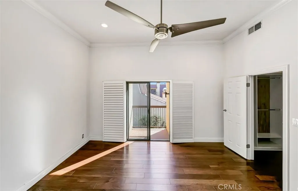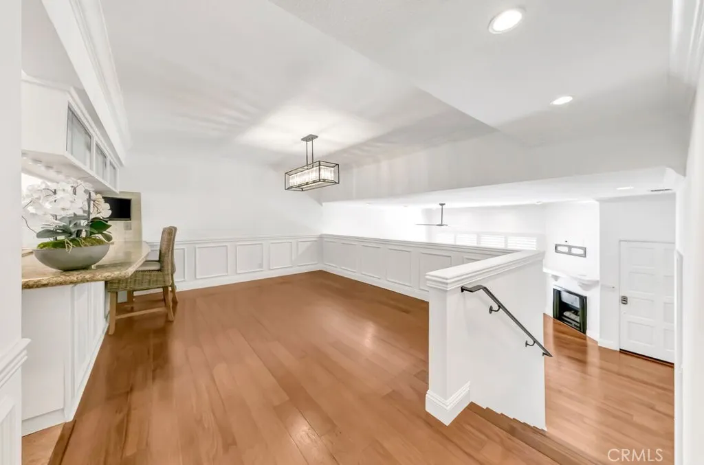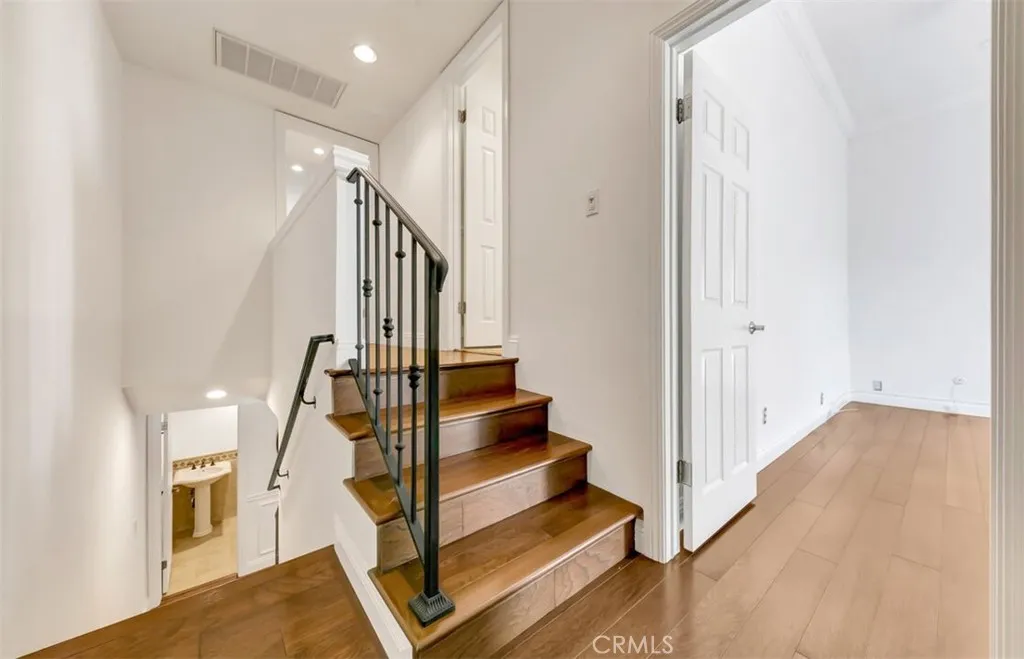 Welcome to this beautifully updated split-level townhome in highly sought-after gated Tarzana Villa North. From the landscaped, secured entrance, to the homes thoughtful multi-level layout and abundant natural light, it offers rare privacy and comfort. A spacious tiled private patio extends your living space, ideal for morning coffee, outdoor dining, or relaxing outdoors. Inside, youll find high ceilings, rich hardwood floors, custom plantation shutters, central air and heat, modern Minka Aire ceiling fans in every room, custom wrought-iron stair railings, wainscoting (wall paneling), crown molding, and crisp white walls for an airy, designer feel across all levels. The elevated dining area overlooks the large living room, creating an open, architectural flow. The kitchen offers generous granite counters, white cabinetry, a wide breakfast bar, custom millwork, and an included Jenn-Air refrigerator in excellent working condition. A spotless, beautifully maintained powder room completes the main level. All appliances, including a near -new matching washer and dryer (pictured) are included. The existing fireplace is decorative; a buyer may choose to replace it or install an electric or modern gas unit. Upstairs, the oversized primary suite easily fits a king bed and seating area. It features a large walk-in closet with full custom-built-ins, and premium Berber-style carpet. The ensuite bath includes a long double-sink vanity, separate makeup area, and a private water closet with walk-in shower. The second bedroom has high ceilings, a custom cedar-lined closet with added cabi