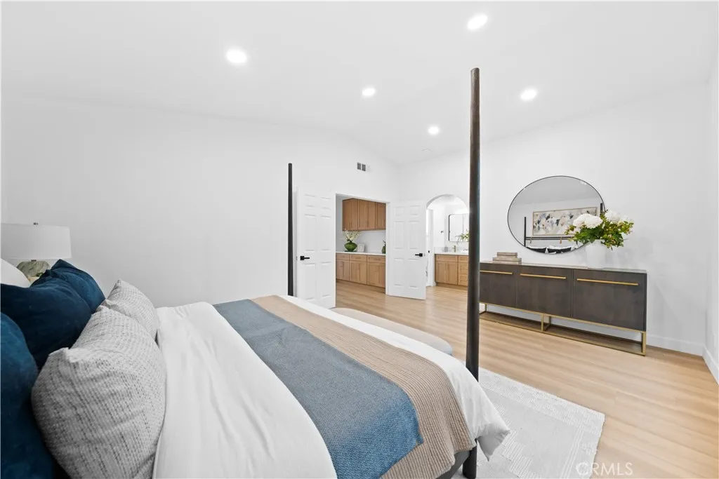 In the heart of Mission Viejos sought-after Madrid Del Lago community, this exquisitely renovated home invites you to experience refined Southern California living. Designed with meticulous attention to detail, the property features high cathedral ceilings that welcome natural light, creating a warmth and inviting atmosphere. The formal living room is spacious and enhanced by a garden window showcasing the picturesque front yard. The thoughtfully designed floor plan includes a chefs kitchen equipped with brand new top-of-the-line appliances, quartz countertops, elegant cabinetry, and stylish fixtures. The sunk-in family room provides a perfect space for entertaining, featuring an elegant fireplace and a bi-folding door that opens up an entire wall for seamless indoor-outdoor living. The outdoor area offers a stunning view and ample space for social gatherings or relaxation. This home boasts 4 spacious bedrooms and 3 full bathrooms, including a convenient main-level guest suite. The master retreat is a true haven, featuring high ceilings, a large walk-in closet, and a luxurious master bath with dual vanity sinks, new cabinetry, updated hardware, and a walk-in shower. Upstairs, the two oversized bedrooms share a fully remodeled bathroom with premium upgrades. Additional enhancements include new plumbing throughout, new windows, updated flooring, and a brand new HVAC system. This property is a perfect blend of comfort, elegance, and modern design, ideal for anyone seeking a refined lifestyle in one of Mission Viejos finest communities.
