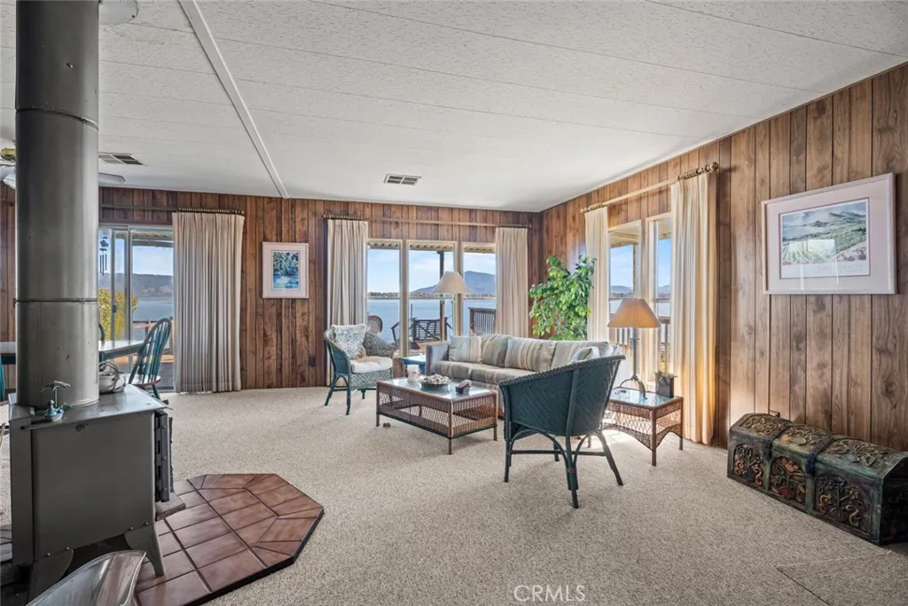Discover serene lakeside living in this generous 1,440 sq ft home, perfectly positioned at the back of this lovely senior park for added privacy and direct lakefront access. Enjoy panoramic water views from the spacious living room, which flows beautifully into the dining area and bright kitchen. Step through the sliding door to the covered deck, the ideal spot for morning coffee or sunset unwinding. Stay comfortable year-round with new heating and air conditioning, and savor the cozy ambiance of the woodstove. Both bedrooms offer ample space, while the expansive laundry room is perfect for storage or crafting. A covered carport and detached storage building add convenience. All of this, right in the heart of Lakeport!
