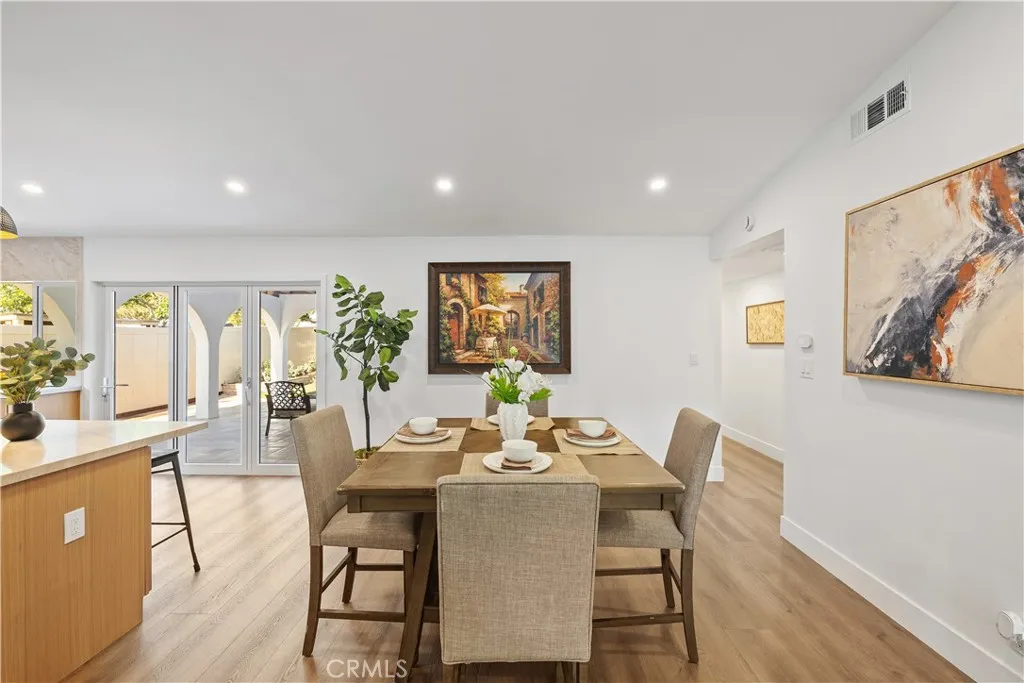 Welcome to 5385 Strasbourg Ave an exceptionally redesigned 5-bedroom single-story home located in one of Irvines most desirable communities, The Ranch! This newly remodeled residence blends modern sophistication with timeless comfort, offering a rare combination of indooroutdoor living, expansive entertaining space, and thoughtful craftsmanship throughout. Step inside to soaring vaulted ceilings, wide-plank flooring, and an open-concept layout that immediately feels warm and inviting. The living room features a striking floor-to-ceiling custom fireplace and oversized picture windowperfect for natural light and neighborhood views. The heart of the home is the showcase chefs kitchen, completely reimagined with custom wood cabinetry, premium stainless-steel appliances, a massive center island with bar seating, designer pendant lighting, and sleek quartz countertops that offer both beauty and durability. The kitchen flows seamlessly into the dining and family areas, ideal for entertaining and everyday living. Retreat to the luxurious primary suite, offering a spacious bedroom, a spacious walk-in closet, and a spa-inspired ensuite bath complete with a dual-sink floating vanity, large walk-in shower, rainfall fixtures, and contemporary finishes. Four additional bedrooms provide ample space for guests, family, or multi-use living. Every bathroom has been beautifully renovated with cohesive, high-end design. What truly sets this home apart is its unique indoor-outdoor layout. Oversized bi-fold doors open to a covered Spanish-inspired patio framed by graceful archescreating a true