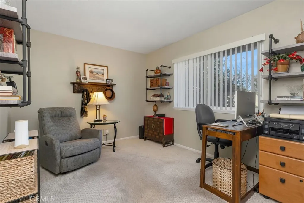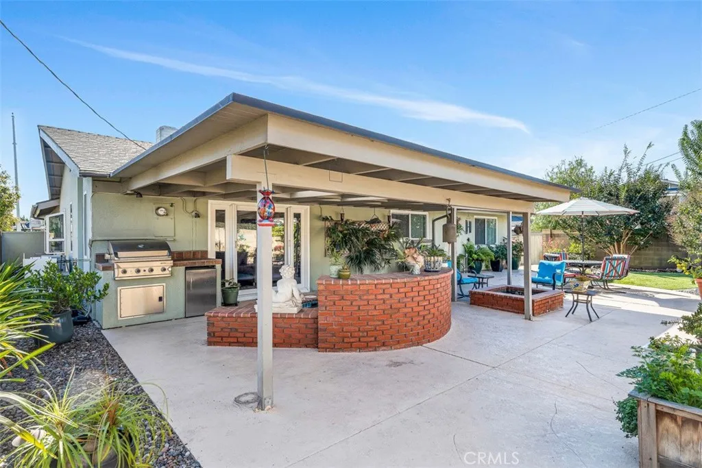 Prestigious beach home, situated on an over sized interior corner lot, while offering excellent curb appeal. It all begins with a renovated front yard, featuring a pavers driveway plus drought resistant landscaping with a fountain, a wooden deck and a picturesque mature tree. A new vinyl fence is also in the process of being installed shortly. As you approach the entry, you are welcomed by a Flagstone front porch and a custom front door with a pocket screen. Once inside, you are greeted by a spacious formal living room, featuring a gas or wood burning fireplace, stained glass windows and French doors leading to the rear patio. The kitchen has been updated in stages with granite counters, recessed lighting, updated cabinets installed in 2014 plus 5 year old stainless steel appliances, with the refrigerator and microwave included in the sale. There is a full sized dining room adjacent to the kitchen, showcasing a large garden window. The hall bathroom has been updated with a bathtub/shower with an acrylic surround plus glass enclosure, vanity with quartz counter and travertine flooring. All of the bedrooms are nice sized and there are mirrored wardrobe closets in the primary plus 2nd bedroom. The primary bathroom offers an acrylic lined shower, vanity with quartz counter plus a travertine tile floor. There are tons of bonus features including: crown moldings, textured ceilings, newer laminate flooring, dual pane windows, a brand new water heater, newer heating, air conditioning, ducting and insulation, all installed in 2021, copper plumbing, a roll-up garage door with a quiet