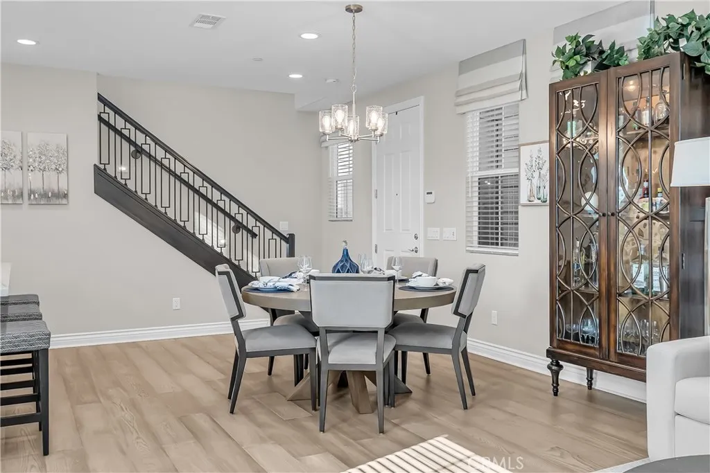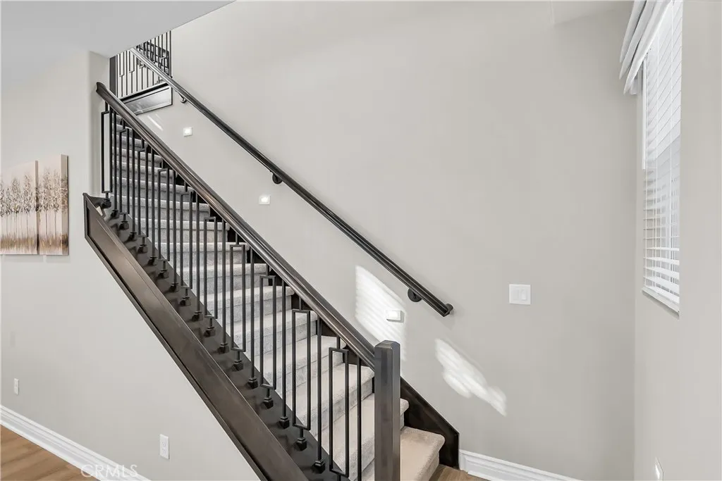Highland Park Former Model - Designed as the exemplary iteration of the popular Norcroft floor plan, this is not an average production home. The professional interior design elements, along with curated upgrades throughout, enhance this open floor plan that boasts a bedroom and full bath on the first floor. The gourmet kitchen serves as the focal point of the common areas, uniting design and function. Striking deep-blue cabinetry complements the stainless-steel appliance suite, full height backsplash, center island with leather finished marble. The same design theme continues to the butlers pantry/coffee bar and walk in pantry that are conveniently ensconced in an alcove off the kitchen. Just beyond the kitchen, the light-filled family room offers large windows, recessed lighting, and warm wide-plank flooring creating a bright, welcoming atmosphere. Up the custom banister and handrail, the second floor continues to impress. At the terminus of the staircase, a large loft with built in desk awaits. The primary suite sits on the opposite side of the 2nd floor from the secondary bedrooms, allowing for privacy. The primary suite is an opulent affair with a spa-like ensuite bath and walk-in closet. Two more bedrooms and a laundry room(w/sink) complete the second floor. Outside, the home wraps the backyard patio, creating a private courtyard for entertaining or dining. The yard is fully landscaped with turf, trees, ornamental gravel, and a drip system. Value add items such as PAID solar, a whole house fan, 2 car attached garage, and a premium lot make this a must see. Highland Pa