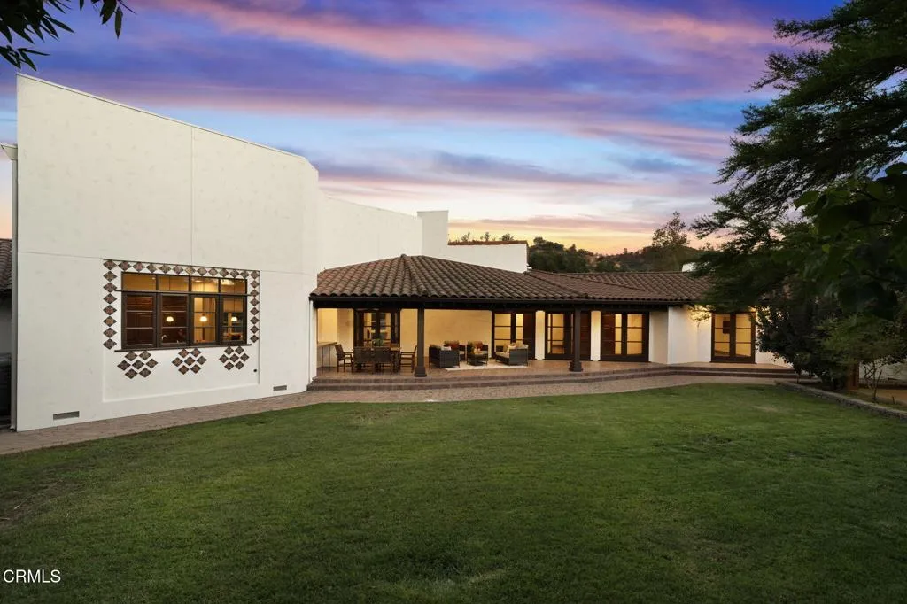 Exceptional Spanish Hacienda Equestrian Estate, custom built in 2009, offers a resort-style retreat and a perfect blend of Old World architecture and modern design for an elevated living experience. Beyond the wrought-iron entry doors and private courtyard, you'll experience a dramatically scaled yet wonderfully comfortable great room upon entry. Soaring ceilings, open sightlines, and broad transitions between gathering spaces create an immediate sense of openness and ease, while warm materials and soft natural light infuse the room with calm, welcoming energy. At the heart of the residence, a magazine-worthy chef's kitchen dazzles with a grand center island, rich custom cabinetry, and countertops and full-height backsplash showcasing dramatic, richly veined natural stone with deep earth tones that add depth and visual texture. A striking row of transom-topped casement windows fills the room with soft, ambient light. The kitchen is appointed with a professional-grade Wolf range, warming drawer, full-size built-in refrigerator and freezer columns, dual-zone wine fridge, and a generous walk-in butler's pantry. A convenient pass-through window provides effortless service to the outdoor dining area. The primary suite is privately situated at the end of a long corridor lined with French doors and offers a peaceful sanctuary with serene views and direct outdoor access. A custom-tiled fireplace anchors the sitting area, creating an inviting spot to relax and unwind. The spa-inspired bath features a jetted soaking tub with tranquil views, a frameless walk-in shower and built-in ben