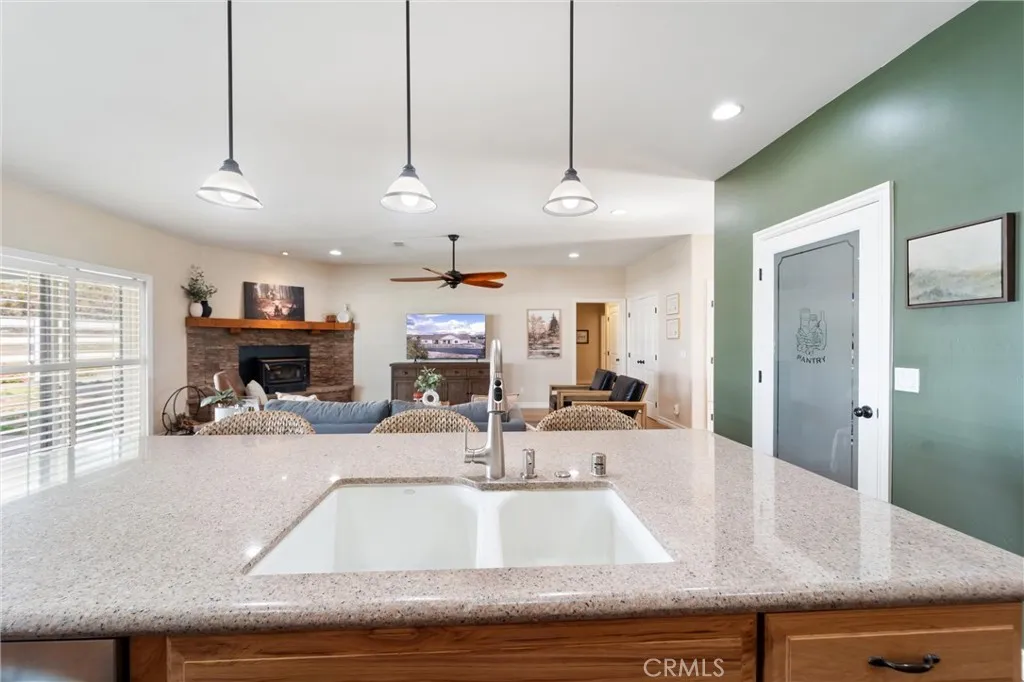 Gorgeous custom ranch home in beautiful Lake Riverside Estates on 2.61 Acres of usable land. This large upgraded home has 2607 square feet of spacious living space encompassed by 3 bedrooms and 2 bathrooms, large bonus room with built in cabinetry that could easily make a 4th bedroom, office or gym. The main living area is a great room with living room, gourmet kitchen and dining area. There is also a formal dining room with built in buffet. There are many upgrades including stainless steel appliances, hickory cabinets and large center island in kitchen. Granite countertops in kitchen and bathrooms, plantation shutters, wood burning stove in living room. For your vehicles you will enjoy the 3 car garage plus separate detached garage building. There is front and backyard fencing around the home, covered front porch, rear cement covered patios, fruit tree orchard and many mature native redshank for privacy and low maintenance native landscaping. This property has so much potential while still having room to add your own character and touches to make it yours! Sold separately is an additional adjacent lot with 2.55 acres of land for anyone wishing to have an above average lot size and still live in Lake Riverside. Lake Riverside is conveniently located 30 minutes from Temecula, one hour from Palm Desert close nearby towns of Idyllwild and Julian. You will enjoy the mild 4 season climate at 3500 ft elevation. Lake Riverside Estates amenities include: gated community, stocked lake with picnic areas and playground, community equestrian center, security, maintained roads, private