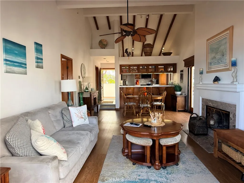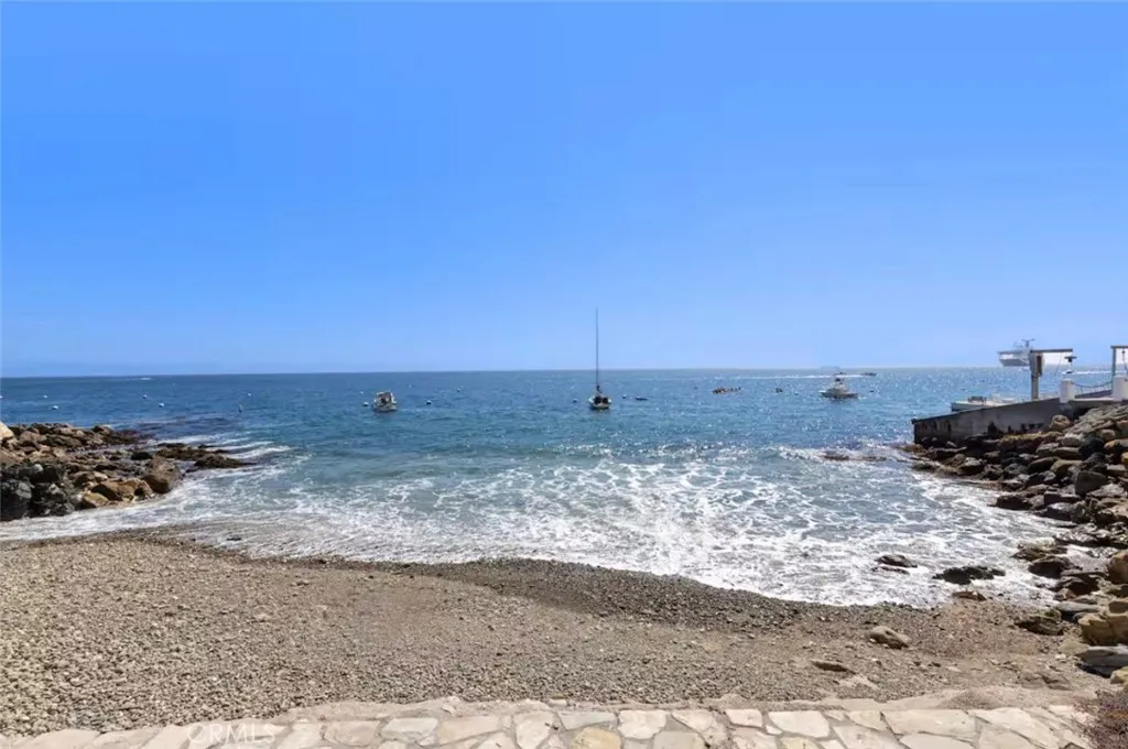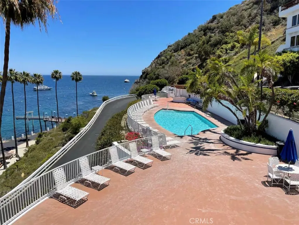 Welcome to Hamilton Cove the only guarded, gated community on Catalina Island.?This immaculate villa checks all three of the big-ticket boxes buyers want most: a stunning ocean view, a low number of steps, and the coveted short-term vacation rental licensea rare asset now that the City of Avalon has capped new permits. Just 15 easy steps from Playa Azul, this corner end-unit sits close to the ocean and offers lovely water views from the living room, bedroom, and two private balconies. With no unit above and extra windows on the side, the villa enjoys exceptional natural light and a sense of privacy more reminiscent of a single-family home. The property is offered fully furnished and includes a street-legal Avalon-approved golf cart. The assigned parking spaceanother rarityis only steps from the front door rather than several blocks away. Beautifully remodeled, the interior features quartz countertops, bar seating, stainless steel appliances, an oversized sink with upgraded hardware, and stylish flooring throughout. A granite fireplace anchors the living room, and dramatic vaulted ceilings elevate every room, including the kitchen, living room, bedroom, and bath. Additional conveniences include full-size interior laundry, a bedroom closet with built-in organizers, and attic storage accessible through a hidden hatch. The villa overlooks a charming grassy croquet lawn rather than a neighboring building, giving it open views, abundant natural light, and a uniquely airy feel. Wake up to breathtaking sunrises, sip morning coffee while watching for passing dolphin pods, and enjoy