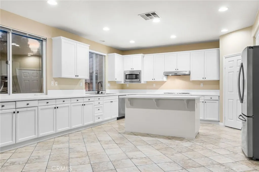 Homes with six bedrooms are rare in this part of Murrieta, and this one stands out for both its immaculate condition and its premier location. The property sits above the prestigious Bear Creek Country Club and captures sweeping mountain views that feel completely unobstructed. Inside, the home offers high ceilings, open living spaces and beautiful natural light. The flooring includes upgraded vinyl plank and custom tile that give everything a fresh and refined feel. The main level includes a full bedroom and bathroom, a welcoming living room with a fireplace and a spacious kitchen designed for everyday living and entertaining. The kitchen features elegant white cabinets and gorgeous quartz counters, stainless appliances, a large center island and generous cabinet space. It opens directly to the family room where a second fireplace adds warmth and charm. A French door leads you from the family room to the covered patio and backyard where you can relax while taking in the forever views. Upstairs there are five additional bedrooms plus a loft. The primary suite is truly luxurious, complete with a private balcony overlooking the mountains and golf course, and a retreat area with its own fireplace. The primary bath includes a soaking tub, extended counter space and an oversized walk in closet. Set on a quiet cul de sac, this home offers the California lifestyle so many people strive for, combining comfort, space and a location that feels elevated in every way.