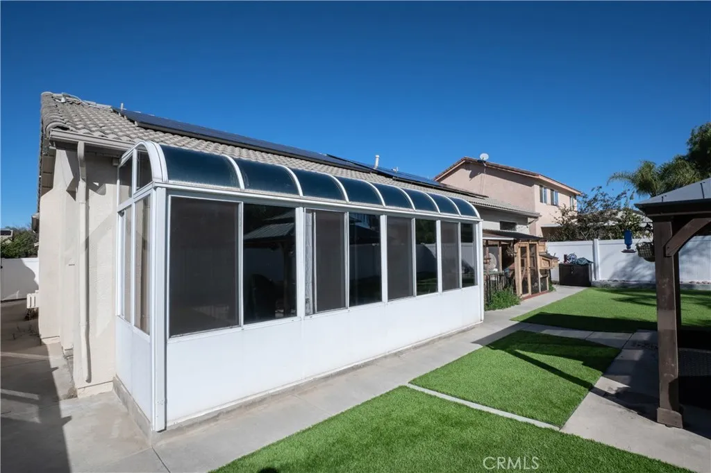 This stunning 3 bed / 3 bath home has been fully remodeled and comes with a rare bonus: a front casita that can be used as a rental unit, office, studio, gym, or private guest space. Fresh upgrades flow throughout the home, offering move-in-ready comfort and modern style. The exterior has been completely revitalized with new vinyl fencing, new concrete, updated drainage, and a beautifully redesigned backyard perfect for gatherings, pets, or relaxation. Enjoy low utility costs with owned solar panels. A spacious two-car garage, oversized driveway, and large yard provide abundant parking and outdoor possibilities from hosting events to adding future features. Whether you're looking for income potential, extra living space, or a flexible multi-use layout, this property truly has it all. Recently Remodeled complete backyard renovation, New Turf , New Drainage under turf and throughout backyard. New Stones and cement retaining walls and brand new vinyl fencing to separate not only the yard but the front casitas yard to the main houses yard. New Solar Panels. Come Check This Beauty out!