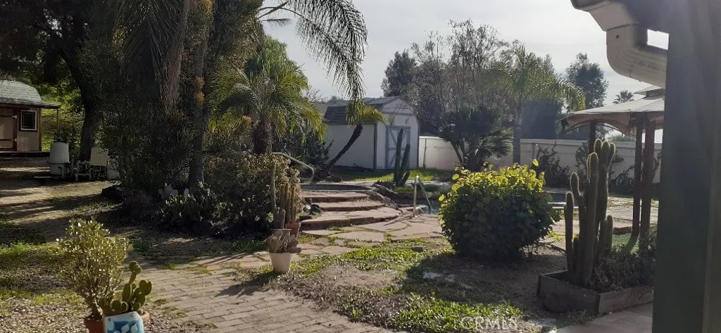 This single-story Solar Powered Home is located in the Victorian Estates Community. Its situated on a .46-acre lot in one of the most desirable neighborhoods of Wildomar. NO HOA and LOW PROPERTY TAX 3-bedroom 2-bath, 1812 sq ft home is the perfect combination of functionality, and charm. Enjoy the open floor plan, high beam ceilings, spacious living and dining room, Pot shelfs throughout the home to show off your pretty collectable. Designer ceiling fans and light fixtures, professionally laid tile floors and whole interior has been freshly painted. Lots of natural light in kitchen with huge windows, newer custom hickory cabinets, large breakfast bar, colorful pendent lights and a cozy bonus room with brick fireplace which leads out to the patio and swimming pool. Backyard has a variety of mature trees and flowers for a park like setting, custom tile patio with a gazebo and lots of steppingstones leading to the pool and different areas of the yard. Completely fenced with gate entrance for possible RV parking and four sheds for storage. New carpet in all three bedrooms. The master has 2 large closets and patio glass doors leading out to the pool. The spacious attached bathroom has custom tile designs in this large walk in shower and a colorful slate floor. Three car garage has lots of room for storage in the high ceiling rafters and washer and dryer hookups. Minutes to the 15 Freeway, with quick access to shopping, schools, hospitals, restaurants and the famous Lake Elsinore which is the largest freshwater lake in Southern CA, with boating, fishing, and water sports.