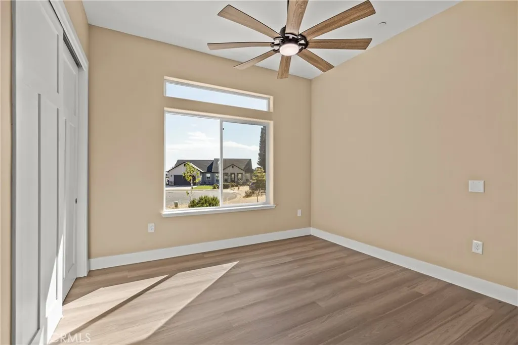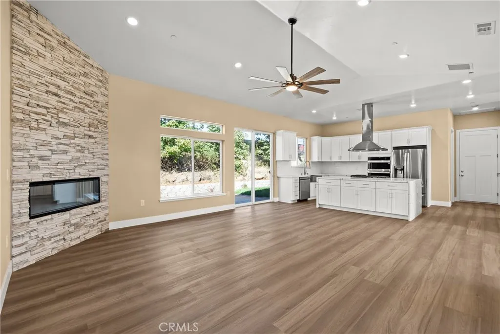 Welcome to the home in the location you've been waiting for! Tucked back on a quiet cul-de-sac of conforming homes with OWNED SOLAR, this home is sure to impress. Through the double front doors, you are greeted into the foyer which includes a coat closet to the left, and formal dining area to the right, then leads you into the open and airy living area. The living area features a vaulted ceiling, modern ceiling fan, a cozy electric fireplace with floor to ceiling stone detail, and a large slider leading to the low-maintenance backyard. The gourmet kitchen features quartz countertops with a waterfall island, LG stainless steel appliances, a gas cooktop, walk-in pantry, and farmhouse sink. This sought after split floor plan, provides a private primary suite that contains a walk-in closet, and attached bathroom that includes a dual sink vanity, soaking tub, and step-in shower. On the same end of the home is a half bathroom, and large laundry room with tons of cabinet and counter space. At the other end of the home are the 2 guest bedrooms, and guest bathroom. Additional features include a whole house fan, 2 car garage, exterior stamped concrete and so much more!