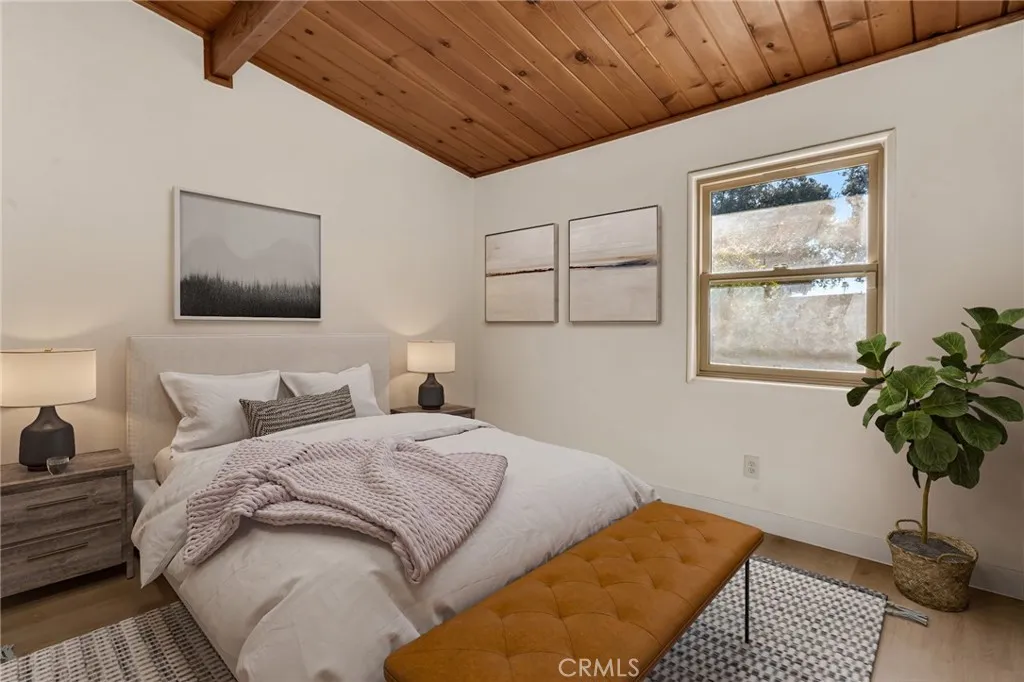 Welcome to the city of Azusa! Welcome to this beautifully refreshed 3-bedroom, 2-bath home that blends mid-century character with contemporary comfort. Set on an inviting lot with a lush front lawn, this light-filled retreat offers warm, natural finishes and an easy-flow layout perfect for everyday living. Inside, youre greeted by stunning vaulted wood-beam ceilings that create an airy and open feel. The spacious living room features large sliding doors that frame the private backyard and fill the space with sunlight. Just off the living area, the dining nook enjoys views of the yard and effortless access to the kitchen, making entertaining a breeze. The serene primary suite offers a peaceful escape with its own en-suite bath and calming natural light. Two additional bedrooms provide flexibility for family, guests, or a dedicated home office. Outside, the expansive backyard is a blank canvasready for weekend gatherings, a garden, or future enhancements. With its inviting curb appeal, modern neutral finishes, and architectural charm, this home truly checks all the boxes. Move-in ready and full of potential, this is the ideal place to settle in and make your own.