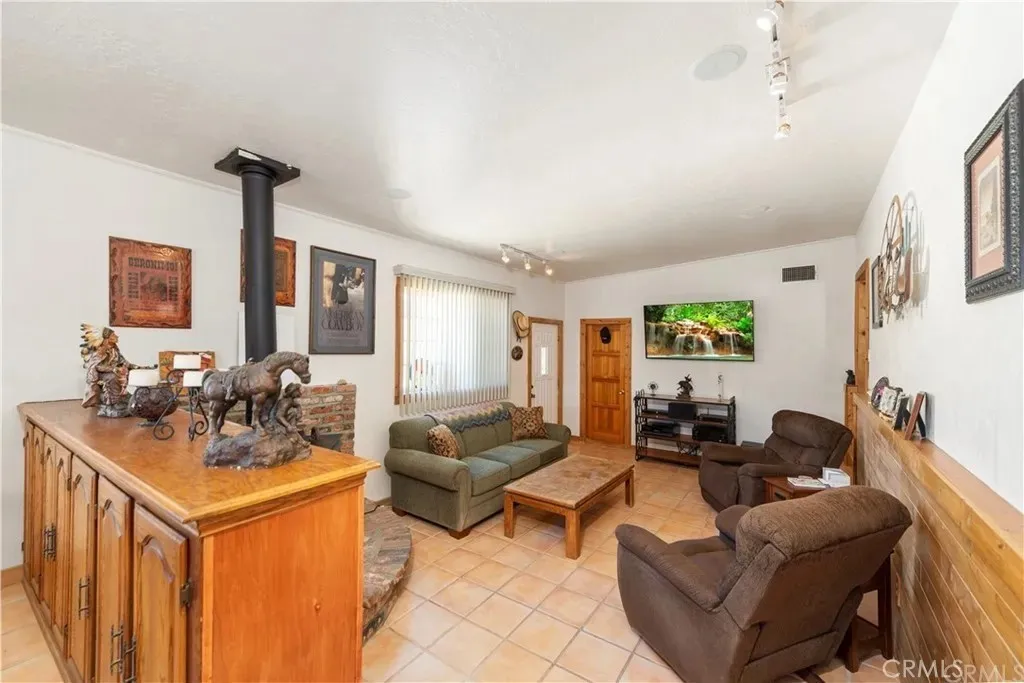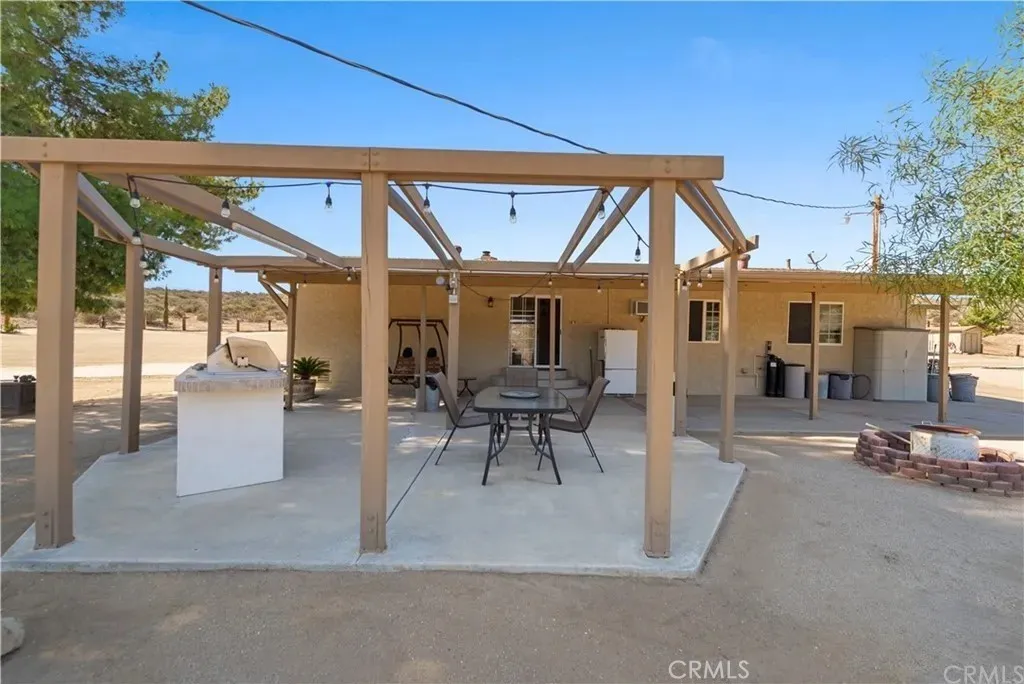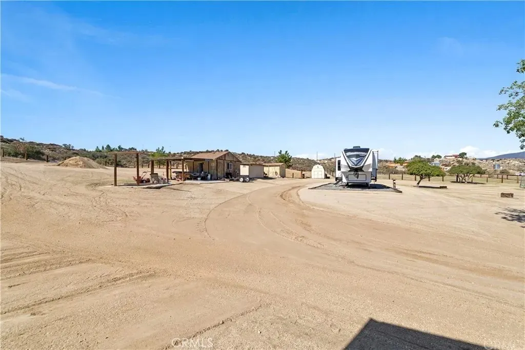 Welcome to your new Ranch Home! Enjoy the 4 acres of nearly flat, cleared, useable land by entering through the automatic security gate, which is part of a fully fenced property. This custom-built 2 bedroom home with a Den, or 3rd Bedroom, can be your own slice of heaven with its peaceful and quiet surroundings. The living room has a real wood fire stove to warm and provide the serenity of fire crackling in the winter. The dining room has a built in solid oak hutch and glass windows. The kitchen is equipped with Corian counter tops, a duel fuel range/oven, and plenty of solid oak cabinets, some with glass doors, for storage. This kitchen has crown molding accents throughout and a breakfast bar next to the sliding patio door. The Corian sink sits below a window facing the entrance to this property. Adjacent to the kitchen is a small breakfast nook area with a wall mounted AC unit for extra cooling. The hall and office have plenty of storage and closet space and the connecting half bathroom and laundry room. At the end of the hall is an office. Next are the 2 bedrooms each with a large closet. One bedroom has its own exterior door. The centrally placed full featured bathroom comes with all of your standard features. From the outside covered patio you'll enjoy a wonderful mountain view, and a completely furnished BBQ island. This horse property has lots of open space for whatever you would like to do. There are 2 corrals and a round pen for training. There is also a workshop with 220V and a covered service area and a storage shed. At the end of the property between the 2 corra