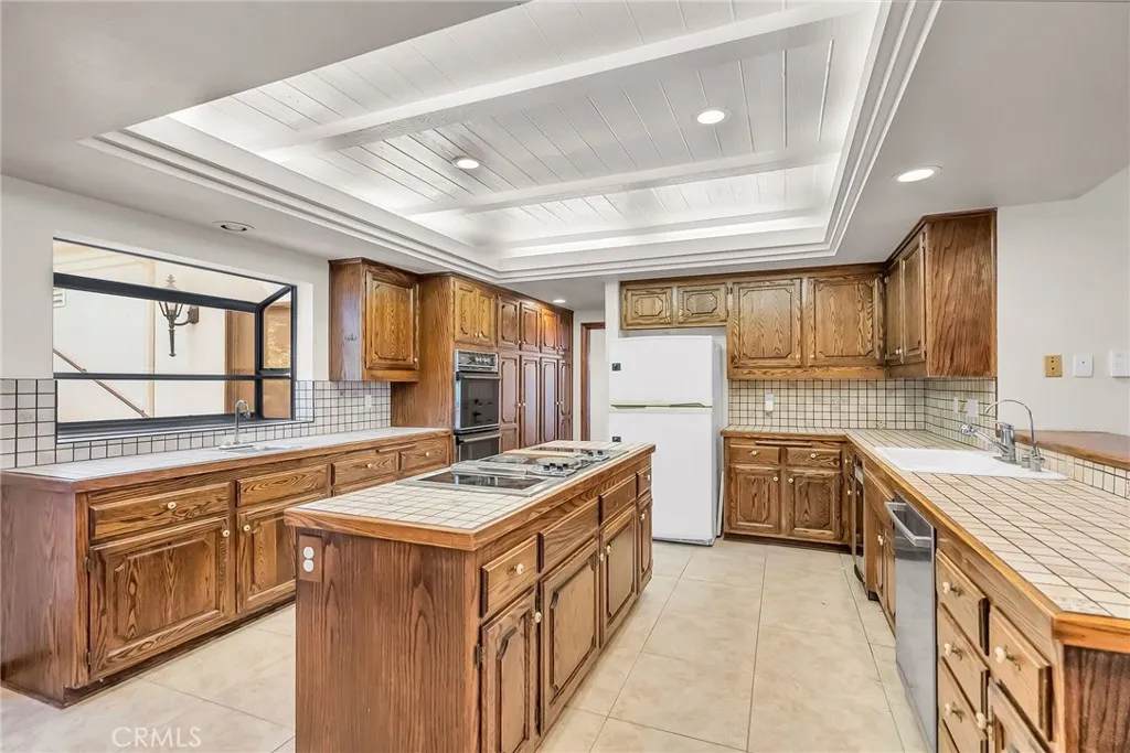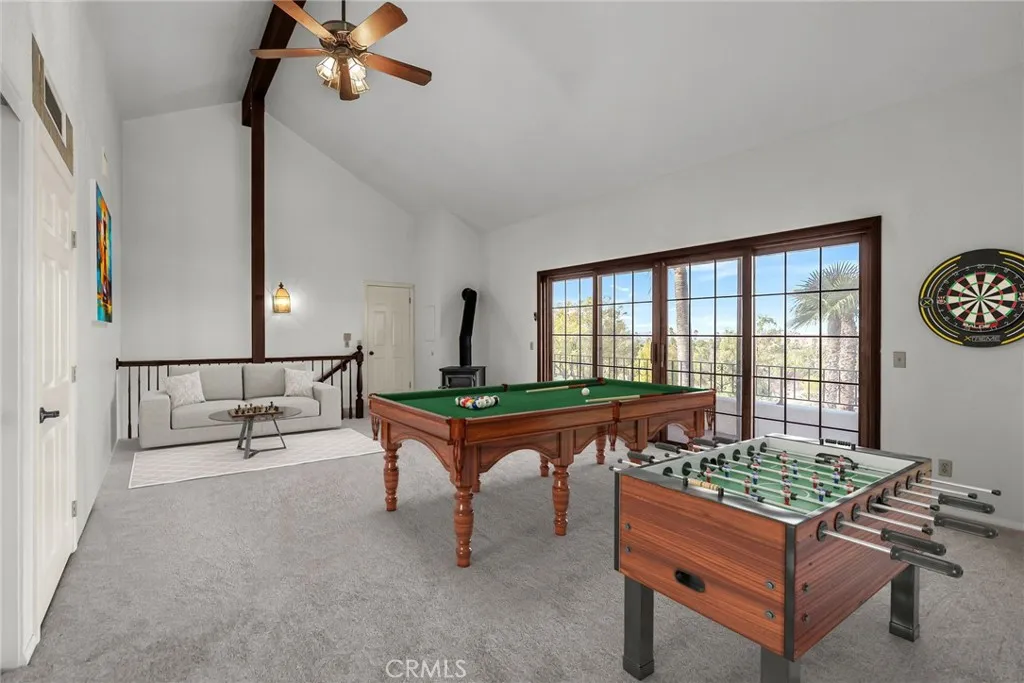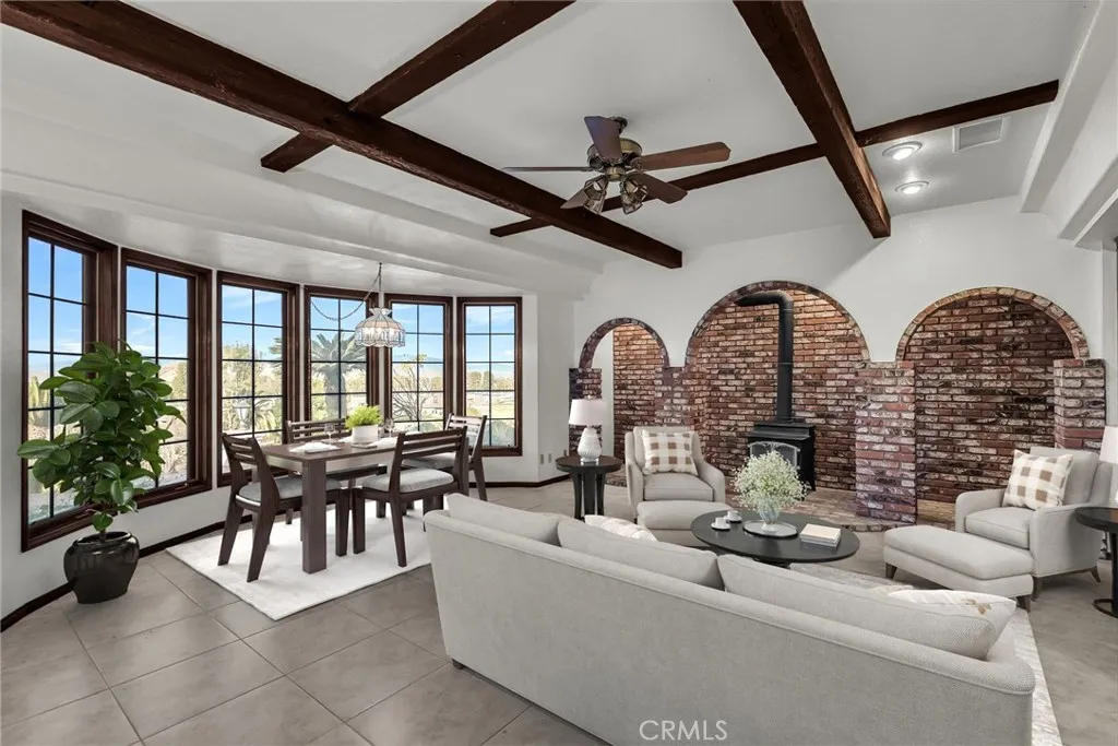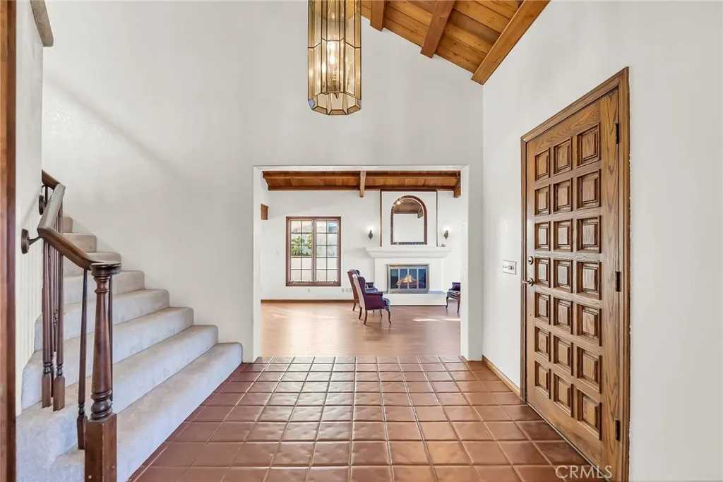 VICTORIA WOODS SOUTH- KNOB HILL ESTATES- stunning custom built Santa Barbara style Spanish Colonial home nestled on this elevated hillside site: Commanding views of Palm Tree lined Victoria Avenue, city lights, Mount Rubidoux, the downtown Riverside skyline and the snow capped mountains beyond. Timeless style and character abound in this thoughtfully configured home; Massive formal living room with dramatic wood beamed ceiling and large Palladian window and wood-burning fireplace; Generous formal dining room with coved ceiling; Expansive island kitchen with walk-in pantry, breakfast bar and all built-in appliances opens to the spacious family room with large circular walk-a-bay window and Inglenook Fireplace with wood stove; Ascend the wide stairs to the upper level bedrooms separated by the upper landing; Two family bedrooms each with a private ensuite bath are located at rear south end of the upper level; The primary suite enjoys the seclusion of the north front of the second floor where views are enjoyed from the adjoining terrace; Additional primary suite amenities include the luxurious bath and walk-in closet with direct access to the upper level laundry room; Also sharing the upper floor but accessible from the back stairs is the guest suite or bonus room with kitchenette, private bath and access to the laundry room; Oversized, attached three-car side loaded garage and large driveway parking area; The grounds are beautifully landscaped with mature shade and multiple varieties fruit trees and plantings amid multiple patios on varying levels affording ample outdoor recr
