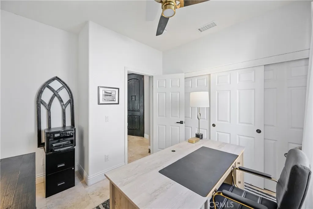Welcome to 32986 Anasazi Drive, a refined contemporary home offering 4 bedrooms, a casita, spacious loft, flex space, and approx 3,428 square feet of thoughtfully designed living space. Privately situated on a cul-de-sac in the highly regarded Redhawk golf community, this impeccably updated, interior designercurated home offers elevated finishes, a highly versatile floor plan, and serene views with no rear neighbors. A gated portico courtyard and custom wrought iron entry open to a grand foyer highlighted by a dramatic flared staircase and expansive living and dining spaces framed by wall-to-wall windows. The kitchen is designed for both form and function, featuring white cabinetry with crown molding, granite countertops, marble backsplash, an extended island, a walk-in pantry, newer appliances, a pot filler, a deep sink, and a custom-built-in bar with a refrigerator. The flexible layout includes a private-entry casita and a downstairs bedroom. Upstairs, the luxurious primary retreat offers a sitting area, separate vanity space, spa-inspired bath with a frameless marble shower, dual vanities, soaking tub, and an oversized walk-in closet with custom organizers. A generous loft presents the opportunity for a fifth bedroom, complemented by an additional flex space ideal for a study or reading area. The outdoor living space is framed by lush mature landscaping, creating a tranquil garden setting complemented by clean-lined concrete stepping stones, decorative river-rock hardscaping, a built-in Lion BBQ, and new vinyl fencing. Designed for entertaining and relaxation, the space