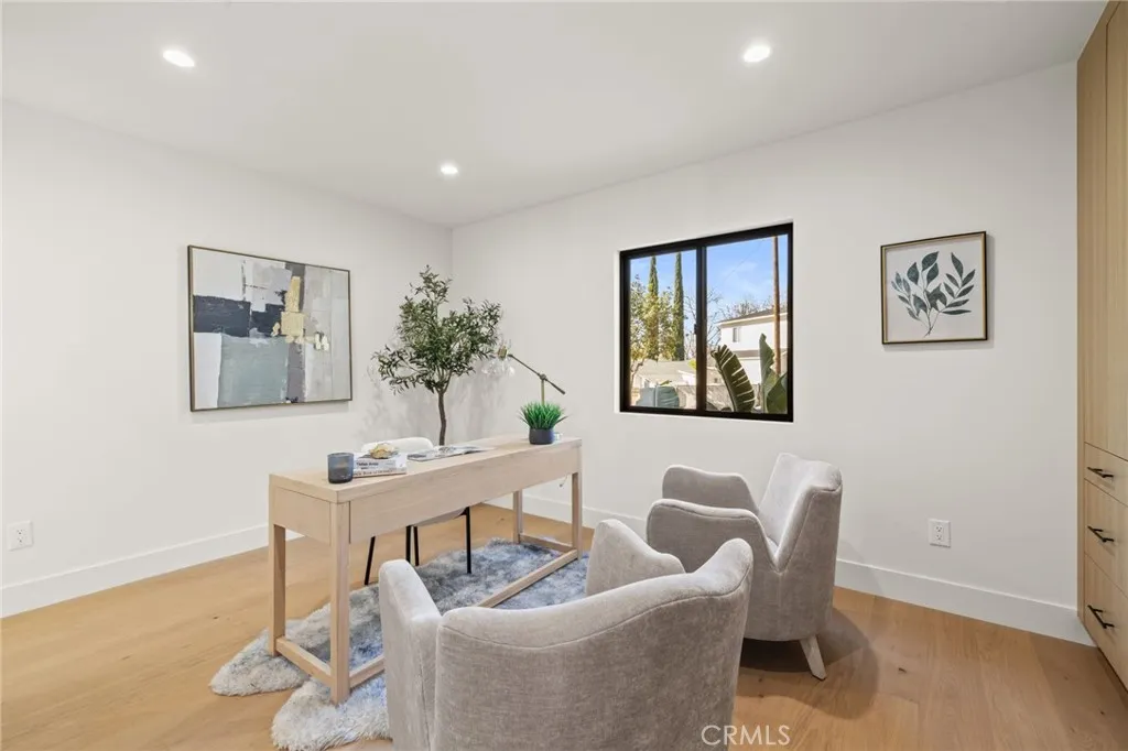 Welcome to this Stunning Burbank Hills Home Perfect for Multi-Generational Living or Income Potential! Step into this beautifully remodeled property where timeless style meets modern convenience. Extensively updated and expanded, this home now features three ensuite bedrooms, a powder room, and an open-concept floor plan designed for comfortable living and effortless entertaining. Enter through the large covered front porch and be greeted by high tray ceilings and abundant natural light that fill the spacious interior. The custom kitchen is a chefs dream, showcasing Taj Mahal quartz countertops, a generous center island with seating for four, and top-of-the-line stainless steel appliances, including a drawer microwave conveniently built into the island. The dining area flows seamlessly into the main living space and opens completely to the outdoor patio through magnificent bifold doors, creating an ideal indoor-outdoor living experience. The primary suite offers a true retreat with two walk-in closets and a spa-inspired bathroom featuring a soaking tub, double vanity, and a custom-tiled shower that exudes elegance. At the rear of the property, discover a recently built 749 sq. ft. one-bedroom, one-bathroom ADU with brand-new paid solar panels. Thoughtfully designed to mirror the finishes of the main home, this accessory dwelling unit provides exceptional flexibility for guests, extended family, or rental income. Additional highlights include a two-car garage with an epoxy-coated floor and finished walls, and a New Tech Norwegian teak-finish siding faade that enhances the h