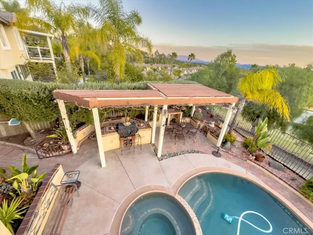 Nestled at the end of a serene cul-de-sac, 40136 Belvedere Ct in Murrieta offers a perfect blend of privacy, breathtaking views, and thoughtful design. Perched on an elevated lot, the home boasts sweeping vistas of city lights and mountains, with stunning sunset views that transform the evening sky. The backyard is an entertainers paradise, featuring a sparkling in-ground pool and a luxurious in-ground spa, perfect for relaxation and entertaining guests. The outdoor patio area is ideal for hosting gatherings or enjoying quiet evenings under the stars. Inside, the home offers a functional and inviting layout, with plenty of natural light and comfort. Additionally, a convenient pantry space tucked under the stairs adds extra storage and functionality. With top-rated schools, shopping, dining, and commuter routes nearby, this home blends tranquility with convenience, making it a truly exceptional find in Murrieta.