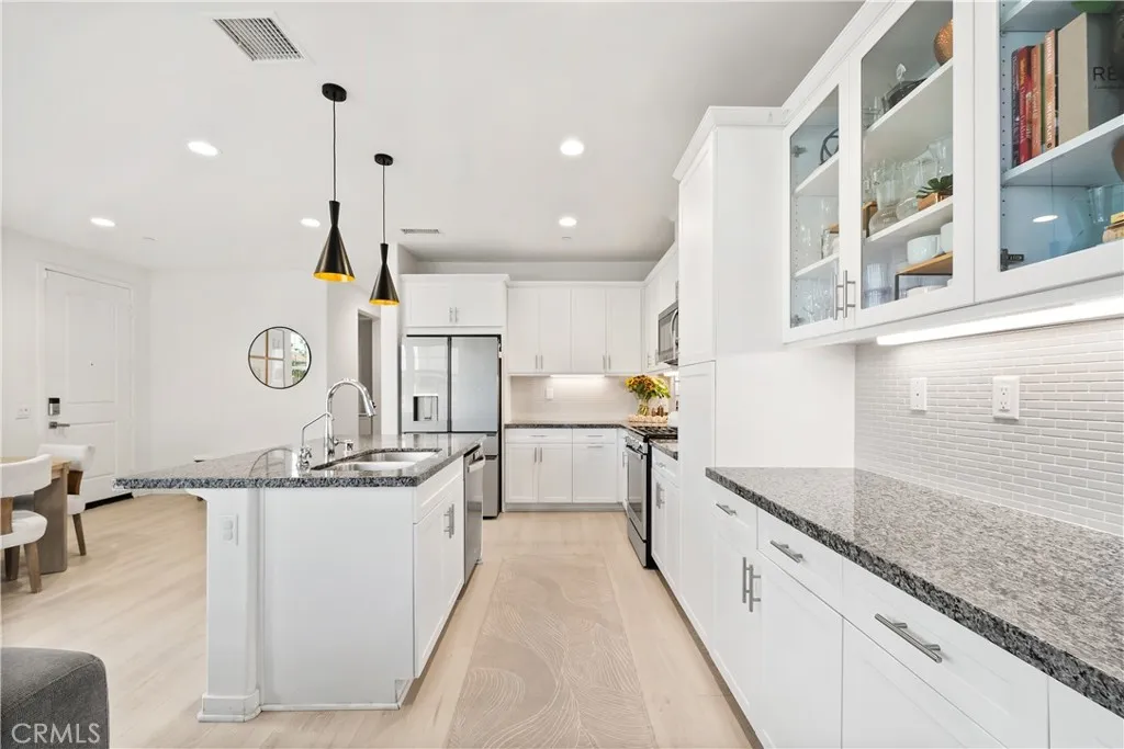 JUST REDUCED! Welcome home to this rare stunning townhouse in the highly sought-after "Paloma at West Creek" community in Valencia. This spacious 3-bedroom, 2.5 bath, 1,750 sq.ft. end-unit with neighbors only on one side. Complete with ample outdoor seating for BBQ, ex. Enter inside to a bright and open living room with recessed lighting, electric window coverings, modern kitchen and great room. Quartz counters, white cabinets, stainless steel appliances and plenty of room to cook or entertain. Half bath downstairs for guests and 2 car garage with direct access into the home. Upstairs are 3 bedrooms plus a good sized loft, perfect as an office or second family room area. Both full baths upstairs with vinyl flooring. A luxurious primary suite with a walk-in closet and en-suite bathroom boasting quartz countertops, dual sinks, and a walk-in-shower. A large shared bathroom. Move-in-ready. This property is part of a breathtaking community with resort-style amenities, Enjoy West Creek HOA amenities- rec center, pools, Basketball court, parks, Paseo trails near award-winning West Creek Academy, Rio Norte Jr High, and Valencia High. Prime location with easy freeway access, close to Westfield Valencia Town Center, dining, and entertainment. Don't miss out- schedule your visit today!