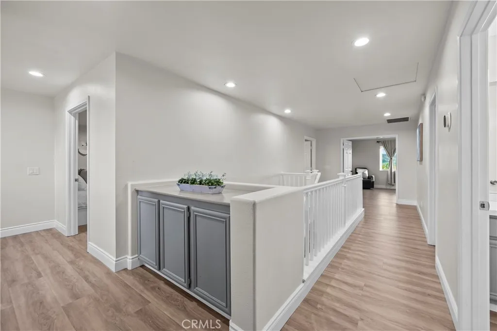 Spectacular view home located in the highly sought-after Corona Promenade community, featuring 5 bedrooms plus an expansive bonus room. Set within a beautifully maintained neighborhood where pride of ownership is evident, this home boasts exceptional curb appeal with lush, manicured landscaping. From the moment you arrive, the homes impressive scale and attention to detail are immediately apparent. Recent upgrades include fresh interior paint throughout, brand-new luxury vinyl plank flooring, and elegant plantation shutters. The spacious living room is ideal for family gatherings, while the well-appointed kitchen offers abundant cabinetry, a newer stainless steel double oven, gas cooktop, newer dishwasher, an open trough sink with a commercial-grade faucet, and a convenient center island. The kitchen flows seamlessly into the large dining area featuring a built-in coffee bar, and onward to the inviting family room with a gas fireplace. A highly desirable downstairs bedroom and full bathroom provide flexible living options, along with an oversized laundry room offering exceptional cabinet and storage space. Upstairs, the luxurious primary suite is generously sized to accommodate king-size furnishings and showcases newly installed vinyl windows with stunning city light views. The primary bathroom features a separate shower, soaking jacuzzi tub, and an oversized walk-in closet comparable in size to a bedroom. Three additional upstairs bedrooms, a full bathroom with dual sinks, and ample hallway storage complete the second level. A standout feature is the massive bonus room wit