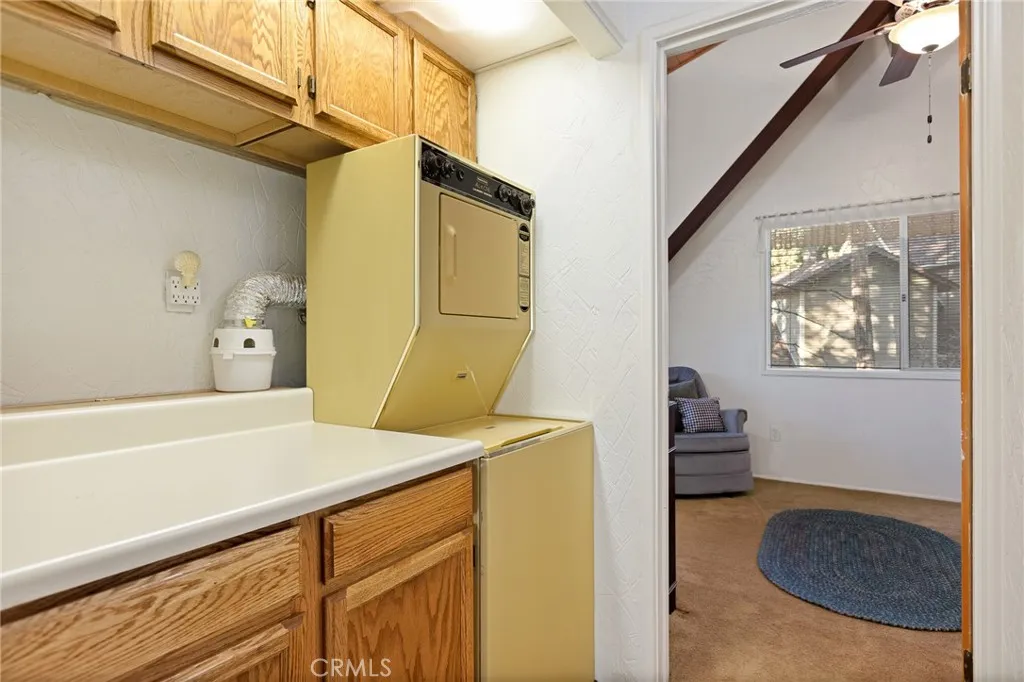 This charming Bavarian model home is located in the desirable Wood-streets neighborhood. It is situated on a wooded lot and offers a convenient circular driveway for ample parking. The main living level features a cozy living room with wood burning fireplace, and a dining area that opens via slider to the back deck where you're greeted by a beautiful forested vista. The open concept kitchen is ideal for entertaining. Also on this level is a bedroom and full bathroom. Upstairs you'll find two spacious bedrooms with vaulted ceilings, the laundry area and another full bathroom. The side yard includes a fenced dog run area. This property has lake rights and is located conveniently close to the attractions of Blue Jay village and the lake trail. You will love the tranquil setting of this home.