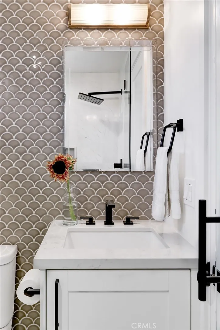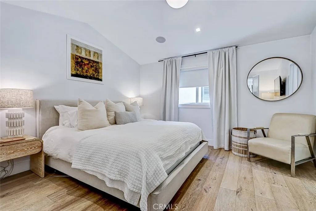 Front-unit townhouse developed by Dennis Cleland, purchased during construction with the owner personally selecting and upgrading finishes throughout. The home blends a contemporary beach cottage feel with a clean stucco-and-siding exterior, creating timeless coastal style. Flooded with natural light, this front unit offers exceptional curb appealframed by a beautiful eucalyptus tree, large privacy hedges, and a custom fence that creates a more secluded front yard experience. Low-maintenance turf makes the space perfect for kids, pets, or entertaining, while still keeping the home lock-and-leave easy. Inside, the kitchen, dining, and living spaces flow together in an open-concept layout that feels both comfortable and elevated. Upstairs, a spacious loft provides flexible bonus spaceideal for a home office, kids playroom, or additional loungewith extra built-in storage. The home also features custom Sonos surround sound speakers, perfect for entertaining or movie nights. The master bedroom is anchored by a stunning, spa-like bathroom featuring custom stone and tile finishes with double vanities. A designer powder room with statement wallpaper adds personality and style. Additional highlights include sweeping views of the LA Basin, central A/C with a Nest thermostat, and a modern square radiant fireplace in the living room. The kitchen is beautifully appointed with high-end Bertazzoni appliances, quartz countertops, a stainless farmhouse sink, and custom glass tile backsplash. Wide-plank 8 oak flooring runs throughout the home. Additional upgrades include whole-home security