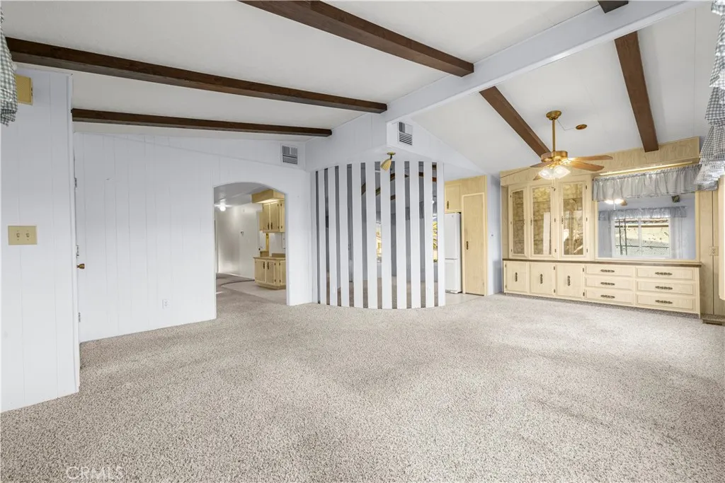 YOU OWN THE LAND. NO SPACE RENT AND ONLY $45 HOA/YEAR. This beautiful home sits on a PERMANENT CERTIFIED FOUNDATION. Great opportunity in Bautista Estates 55+ community, where pride of ownership shines inside and out. From the moment you arrive, youll appreciate the peaceful setting and the homes immaculate condition. Step inside to a bright and inviting living room with vaulted beam ceilings, creating a sense of space and warmth. The home offers both a separate family room and a thoughtfully designed layout that includes a built-in hutch, generous storage throughout, and mirror closet doors. The spacious laundry room is a standout feature, complete with a built-in desk and utility sink, making everyday tasks easy and organized. The kitchen offers a pantry and comes fully equipped with washer, dryer, and refrigerator included, adding immediate move-in convenience. The primary suite features a walk-in closet and a well-appointed bathroom with dual sinks, an oval soaking tub, and a separate stall shower. Outside, enjoy easy-care landscaping, mature, producing fruit trees, and an expansive RV-access area complete with a dump stationa rare and valuable feature. A dedicated workshop provides additional space for hobbies, storage, or projects. This spotless home is ideally located close to shopping and everyday conveniences, while also being nestled at the base of the San Jacinto Mountains, offering stunning views and easy access to hiking and biking trails. Nearby attractions include Soboba Casino, Diamond Valley Lake, and the charming mountain town of Idyllwild, making this an