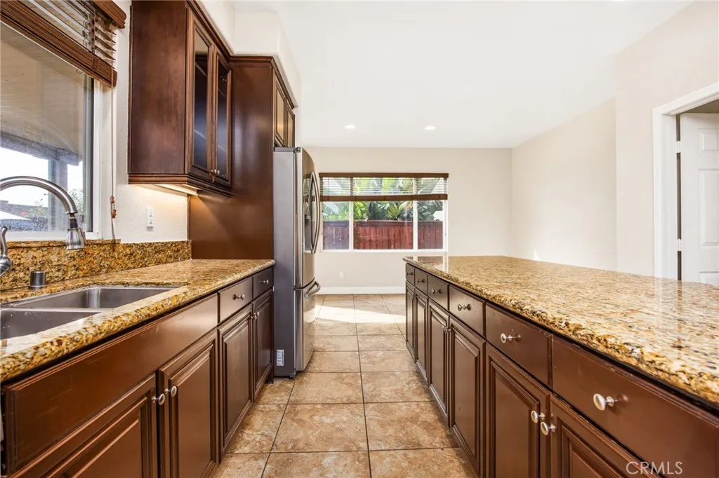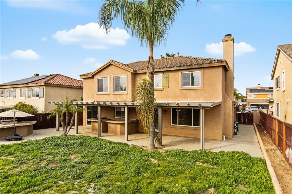 Spacious and thoughtfully designed, this 5-bedroom, 3.5-bath home offers approximately 3,233 square feet of living space with a flexible floor plan and extensive upgrades throughout. The main level features a bedroom and full bath, ideal for guests or multi-gen use needs, along with expansive living and dining areas accented by large windows and recessed lighting. The open-concept kitchen includes granite countertops, an oversized center island with bar seating, espresso cabinetry, a walk-in pantry, stainless steel appliances, and double ovens. The kitchen flows seamlessly into the family room with a fireplace, creating a functional and inviting gathering space. Additional main-level features include a powder room, smart thermostat, and smart-enabled lighting and fans. Upstairs, youll find four additional bedrooms, an open landing with built-in desk workspace, and a dedicated laundry room. The primary suite offers generous proportions, a large walk-in closet, and a spa-inspired bathroom featuring a custom walk-in shower with multiple shower heads and designer finishes. The backyard is designed for entertaining with multiple outdoor islands, built-in BBQ, sinks, and electrical and speaker pre-wiring. A covered patio with ceiling fans provides shaded outdoor living space, and the yard offers ample room for future customization. Additional highlights include laminate wood flooring in common areas and stairs. Conveniently located near parks, shopping, dining, and commuter routes, this home combines space, functionality, and modern upgrades in a well-established Murrieta neighbo