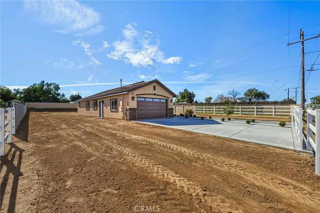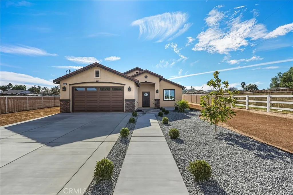 Welcome to this Gorgeous New Construction Home. Modern Custom Built, Home features 3-bedroom,2-bath and 1,597 sqft of living space. Situated on a large 0.31-acre lot. The home features a nice kitchen with Quartz countertops, a nice pantry and plenty of cabinets. a center island, ideal for cooking and Entertaining. Stainless steel appliances. Laundry room is conveniently located inside the home. Paid-off solar panels provide energy efficiency and savings. Well-sized bedrooms and a generous lot offer both comfort and flexibility. Theres no HOA fees. Close to the 215 freeway and to Perris Lake. this is beautifully designed waiting for you!!