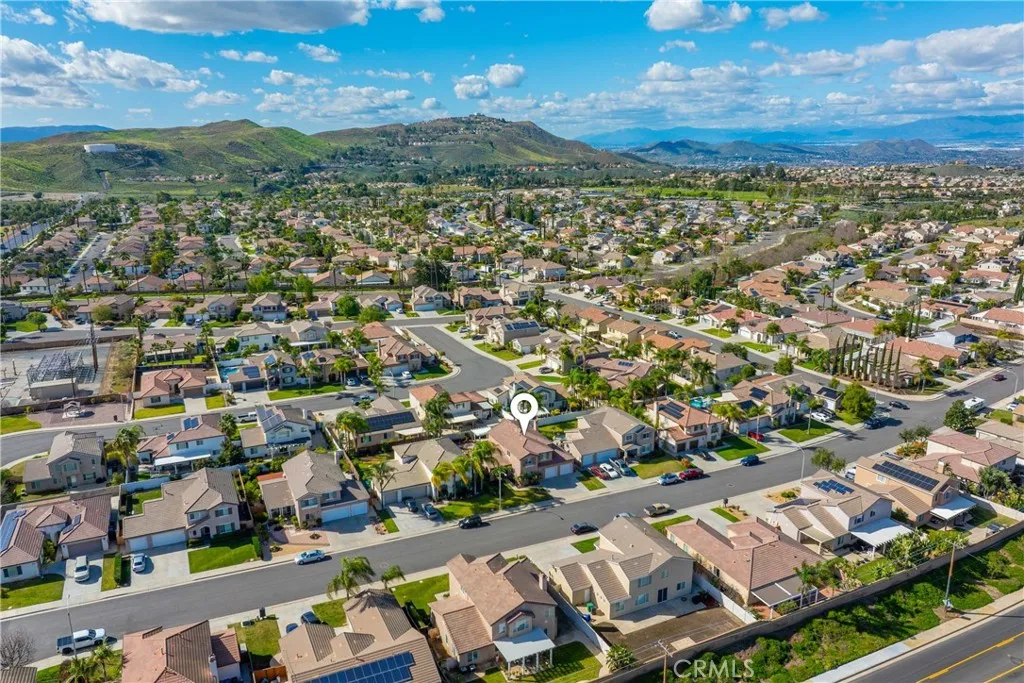 Entertainers Delight! Located in the highly desirable Victoria Grove community near Lake Mathews, this expansive 6 room, 3 bath residence offers the perfect blend of space, comfort, and entertainment ready living. Featuring approximately 3100 square feet of living space. Upon entry, youre welcomed by formal living and dining areas ideal for hosting holidays and special gatherings. The oversized upgraded kitchen features abundant cabinetry, generous counter space, and a walk-in pantry, all opening seamlessly to the inviting family room with a built in entertainment center and high end fireplace creating a warm yet impressive central gathering space. The flexible floor plan includes two bedrooms and a full bathroom downstairs, perfect for guests, multigenerational living, or a private office setup. Upstairs offers four additional bedrooms, two full bathrooms, and a spacious loft ideal for a media room, game room, or secondary living area. The expansive primary suite provides a true retreat with a large walk-in closet and a spa-inspired bathroom featuring dual vanities, a soaking tub, and a separate shower. Upgraded flooring runs throughout the home, adding a polished and modern touch. The backyard is fully landscaped and hardscaped for year-round enjoyment, complete with a spa accented by custom rockwork, covered patio, and BBQ area designed for memorable gatherings and effortless entertaining.