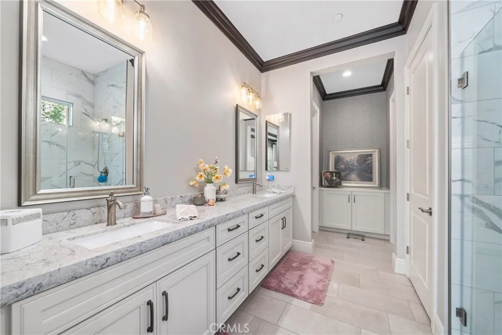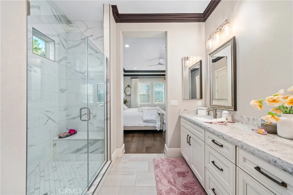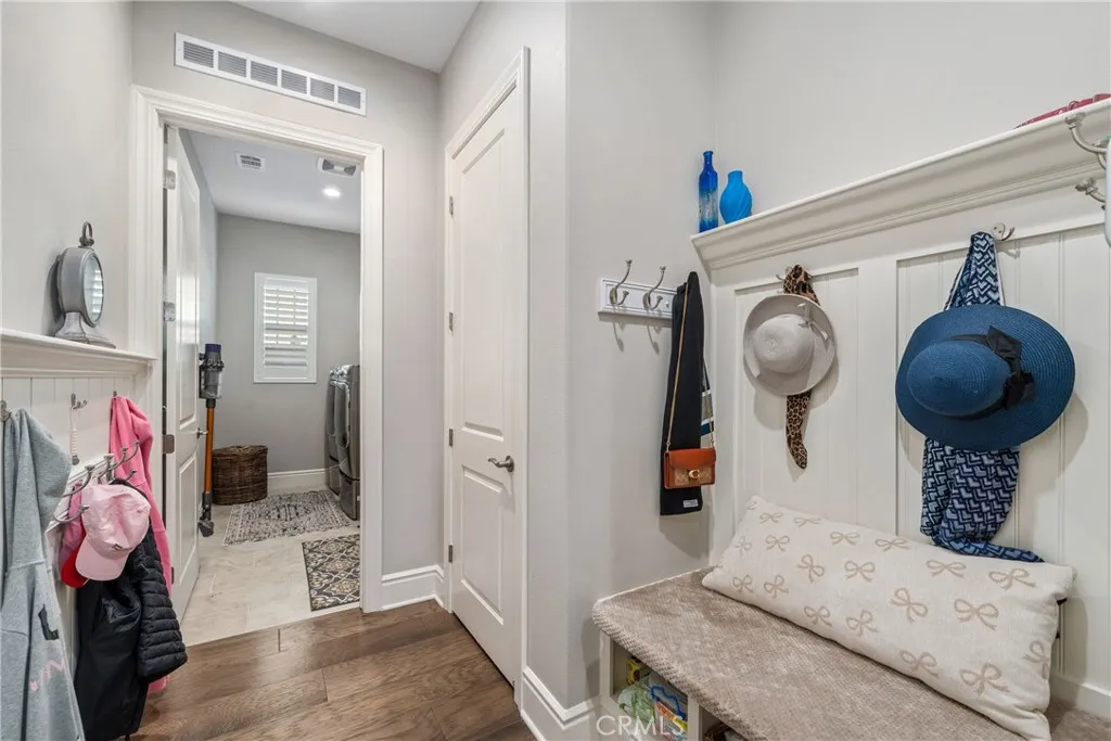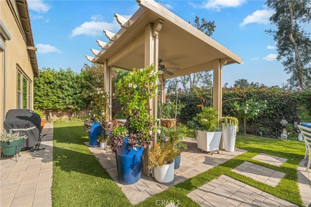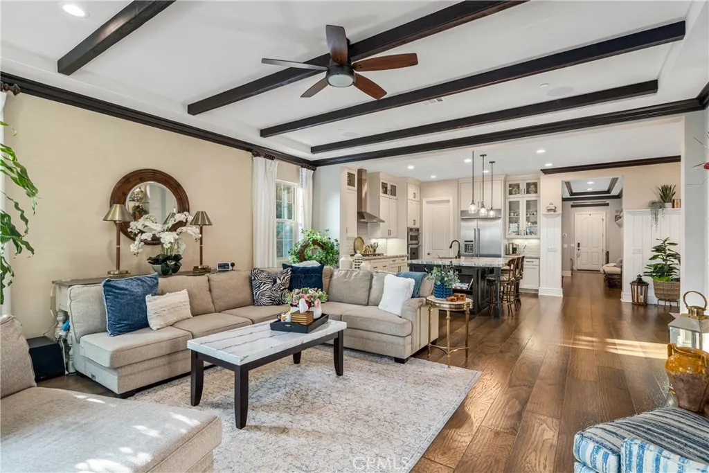 Welcome to luxury living in the prestigious 55+ gated community of La Floresta. This stunning single story residence showcases impeccable craftsmanship where no expense was spared. Soaring ceilings and an open floor plan create a light-filled, expansive feel, complemented by gorgeous wood flooring throughout. The highly upgraded kitchen is a showstopper, featuring leathered granite countertops, a massive island, premium finishes, and an oversized walk-in pantry...perfect for both everyday living and entertaining. The home offers three bedrooms, one is currently being used as a den with sliding pocket doors. It features a thoughtfully designed layout that provides privacy and comfort. A secondary bedroom and full bathroom are located at the front of the home, along with an additional half bath for guests. The spacious primary suite is a true retreat, with wood beams, and tall ceilings, boasting a beautiful en suite bathroom and a generous walk-in closet. The family room is accented by striking wood beams and an impressive wall of sliding glass doors that span nearly the entire length of the space, opening almost completely to seamlessly blend indoor and outdoor living. Situated on a large lot, the backyard is an entertainers dream with a covered patio extension, pergola, lush grass area, mature fruit trees, and a private spa, ideal for relaxing or hosting gatherings. Every detail, finish, and design choice has been carefully curated, offering refined elegance in a serene, resort-style setting. This exceptional home perfectly captures the best of La Floresta living.