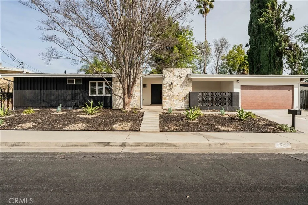 An iconic Charles Dubois mid-century residence, thoughtfully reimagined to blend timeless architectural integrity with modern volume, warmth, and livability. This thoroughly well thought out design, with all bedrooms ensuite plus an additional powder room, honors the original spirit of Dubois design while elevating it for contemporary living. The layout has been redesigned to create a seamless open-concept floor plan, connecting the kitchen, living room, and dining areas into one expansive, light-filled space ideal for both everyday living and entertaining. The walls of glass off the entertaining spaces look out onto the spacious outdoor areas, which include a beautiful swimming pool and sunning terraces set against the backdrop of the mature landscape. Clean lines, balanced proportions, and an effortless indoor-outdoor flow reflect the hallmark elements that made Charles Dubois one of the most celebrated mid-century architects in California. The kitchen serves as the heart of the home, featuring custom cabinetry, premium countertops, combine sculptural design with everyday function. Each bedroom is a private en-suite retreat, offering flexibility and comfort for family, guests, or work-from-home living, while the addition of a well-placed powder room adds convenience for entertaining. A rare opportunity to own a true Charles Dubois architectural homeupdated for modern life while remaining deeply rooted in mid-century designperfectly positioned in one of Woodland Hills most desirable neighborhoods.