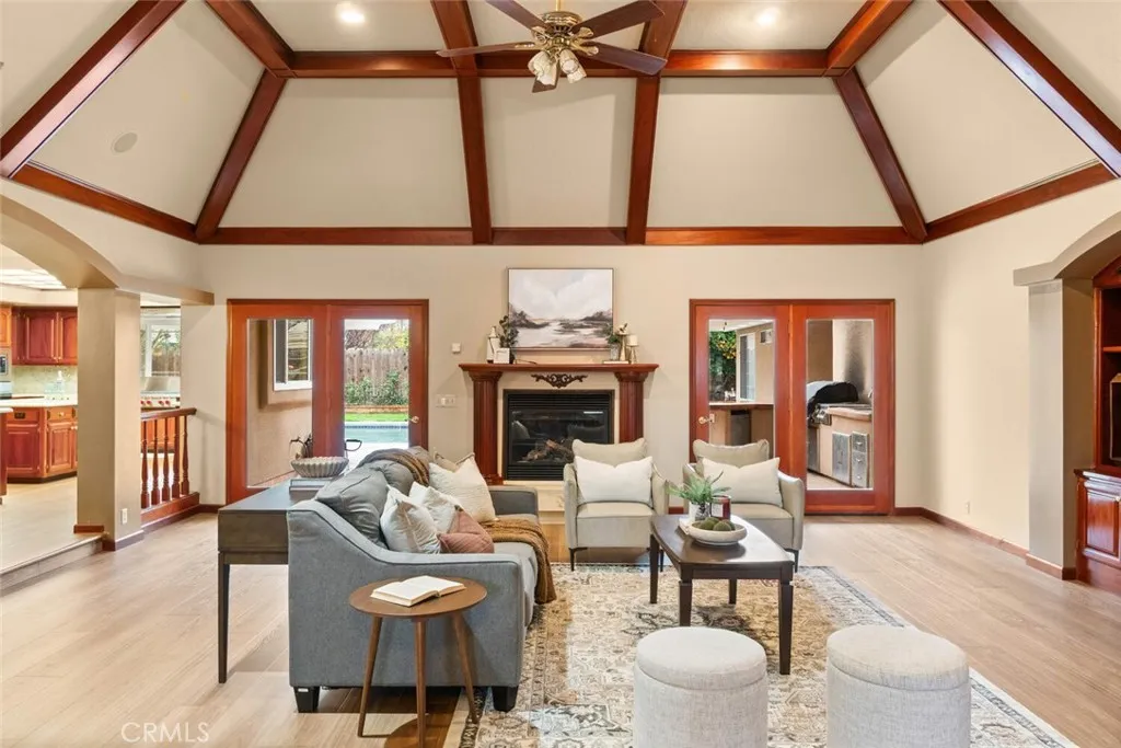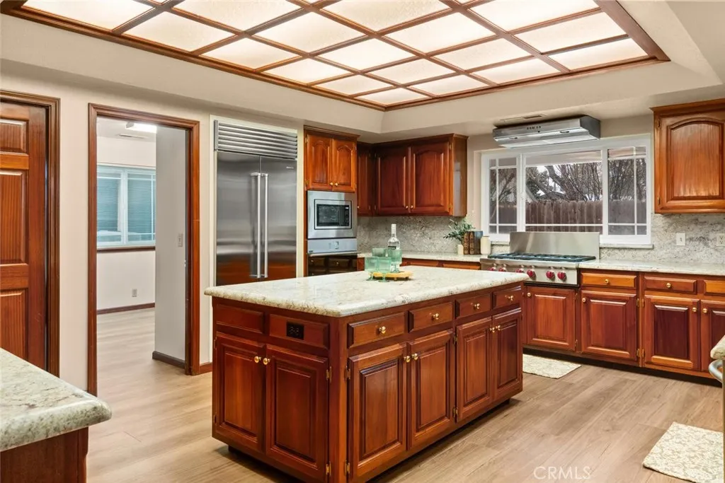 This well-built North Chico home offers thoughtful design, quality finishes, and spaces that truly work for everyday living and entertaining. Inside, youll find new LVP flooring throughout, architectural archways, exposed beam ceilings, and a spacious living room with a cozy fireplace. The kitchen is both functional and stylish, featuring granite countertops, custom wood cabinetry, a Wolf gas cooktop, Sub-Zero refrigerator, large center island, walk-in pantry, and breakfast bar. A formal dining room sits nearby, along with an additional formal living space that adds flexibility for hosting or gathering. A dedicated office with built-in shelving provides a comfortable work-from-home setup. The primary suite offers a private retreat with backyard access, walk-in closets, dual vanities, and a tiled walk-in shower. Three additional bedrooms are generously sized, and the home also includes ceiling fans throughout, an indoor laundry room, and an attached three-car garage. Recent upgrades include a newer furnace, air conditioning system, and water heater, adding peace of mind and efficiency. Out back, the property is designed for year-round enjoyment with a covered patio, Pebble Tec pool, outdoor kitchen and bar, plus a storage shed and garden area. Located in a desirable North Chico neighborhood, this home combines comfort, function, and standout amenities in one complete package.