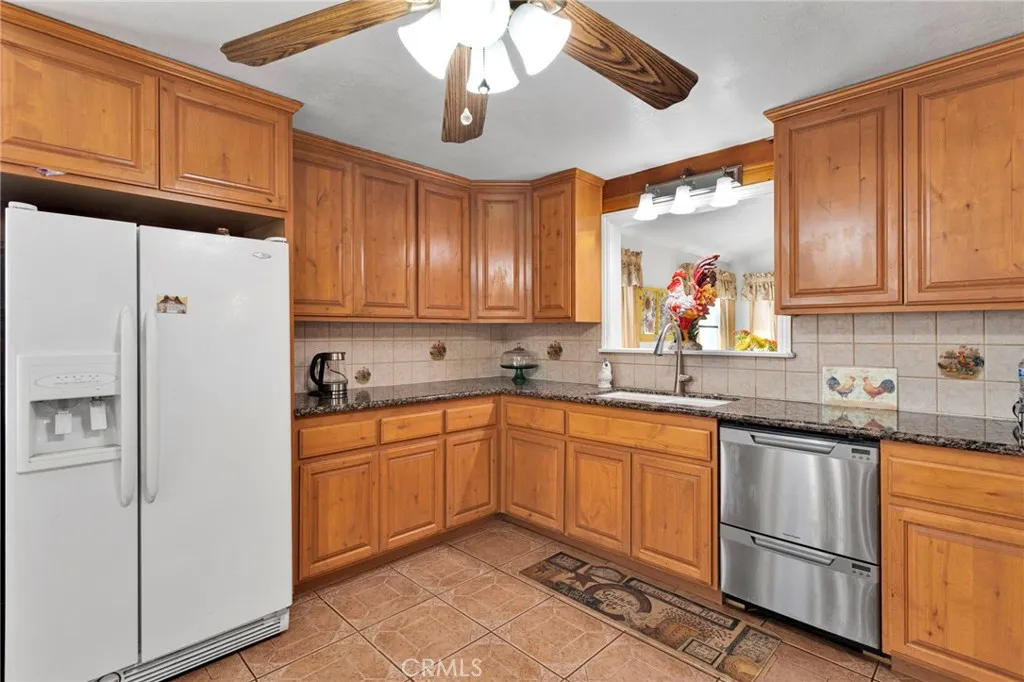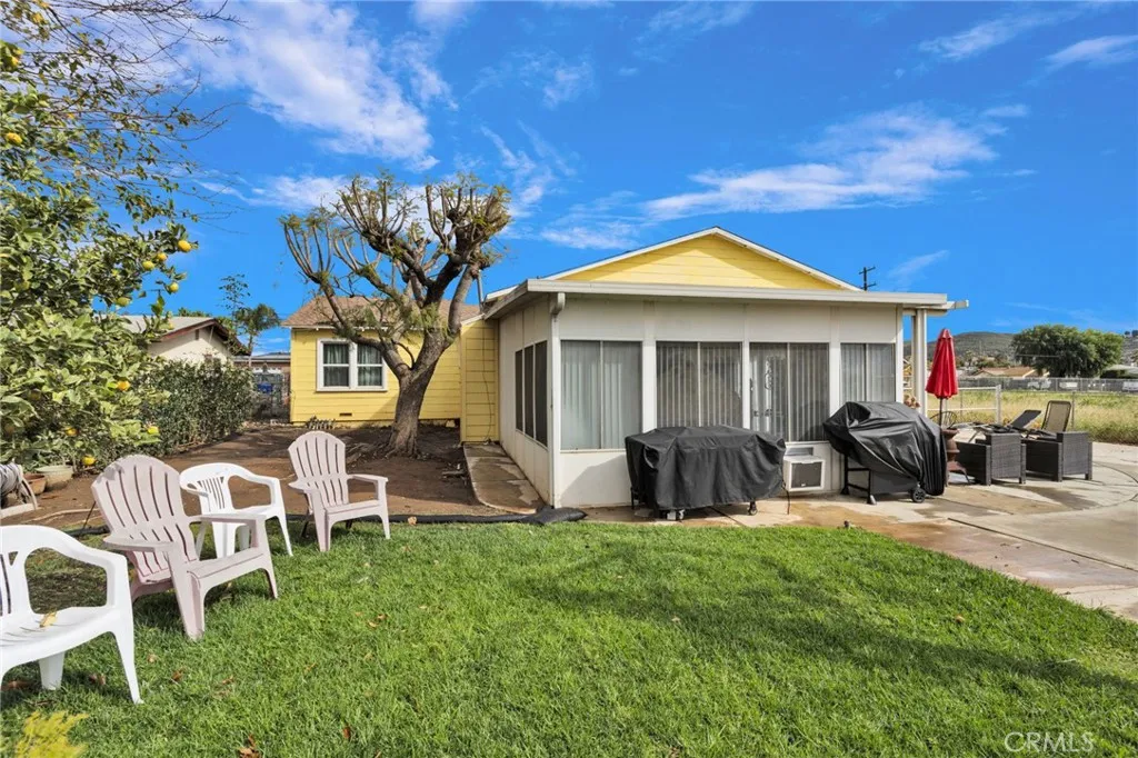 This charming 1950s ranch-style home sits on a 42,689 sq ft lot and offers a rare blend of character, space, and versatility. Inside, the home features a quaint cabin feel with a spacious living room, open dining and kitchen area, and a separate family room addition showcasing cathedral ceilings and a double-sided fireplace, ideal for entertaining. The floor plan includes two bedrooms, two bathrooms, an indoor laundry room, and a 300 sq ft permitted sunroom currently being used as a third bedroom. A long driveway leads to a detached two-car garage, and the cross-fenced backyard provides excellent flexibility for horses, livestock, gardening, storage, or hobbies. The landscaped grounds include a charming gazebo surrounded by a small orchard with peach, apricot, avocado, orange, and lemon trees. The home has been well cared for, including TEX-COTE energy efficiency coated siding, and a new roof approximately 3 years ago. Enjoy a peaceful country lifestyle with convenient access to shopping and dining at The Shops of Jurupa Valley just 1/2 a mile away.