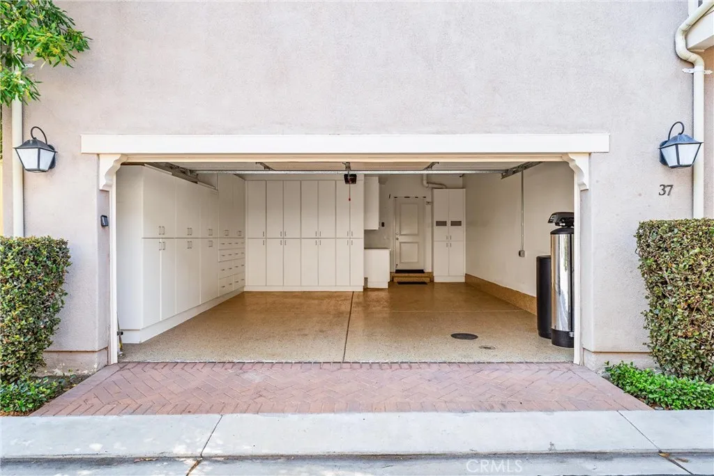 One of the BEST PRICED 2-LEVEL townhomes in Irvine! HIGHLY UPGRADED! ONLY ONE WALL ATTACHED, AND MOSTLY IN THE GARAGE! MELLO ROOS ONLY $1700/yr. Located on a QUIET interior street, this popular Monterey Plan 3 in Woodbury East displays architectural sophistication, highlighted by abundant windows and doors, an inviting front porch, & a charming courtyard. Adding to its curb appeal is a rarely seen upper deck that enhances the handsome front faade and distinctive architectural character. 3 bedrooms +a den/office with custom upgrades at every turn. As you enter, timeless staggered travertine flooring flows throughout the entire first floor. Brand-new carpet on the staircase and second floor. An expansive living room opens to a gourmet kitchen with a large central island. Situated at the heart of the home, the kitchen boasts granite countertops, a full backsplash with glass/natural stone mosaics, custom cabinetry with glass-paneled doors, under cabinet lights, and stainless steel appliances. New interior paint, including baseboards and walk-in pantry's shelves. The spacious dining area features a sliding glass door, opening to an enchanting courtyard, beautifully landscaped with staggered tiles, mosaic accents, & fruit tree. The primary suite showcases a private deck and a luxurious ensuite bath, upgraded with marble countertops, a marble tub surround, and a walk-in shower. Mirrored closet doors & high-end built-in closet organizers in all 3 bedrooms. Whole house water softener/filtration system. Reverse osmosis under the kitchen sink. Instant hot water circulator under the pr