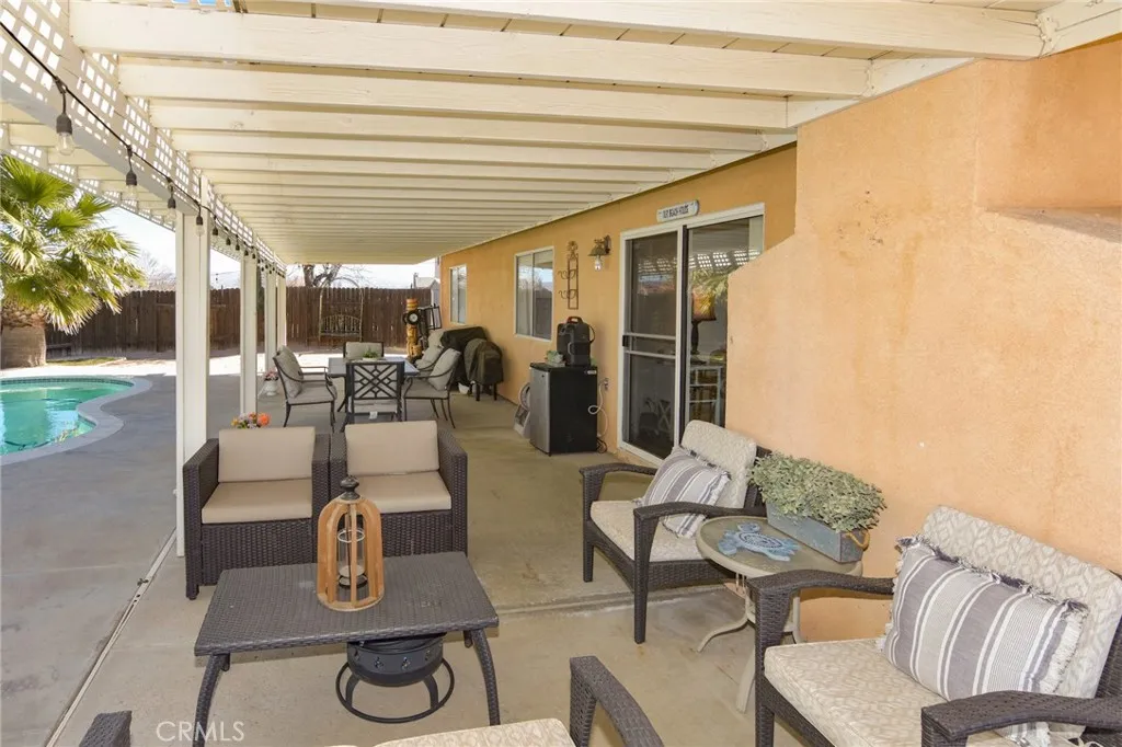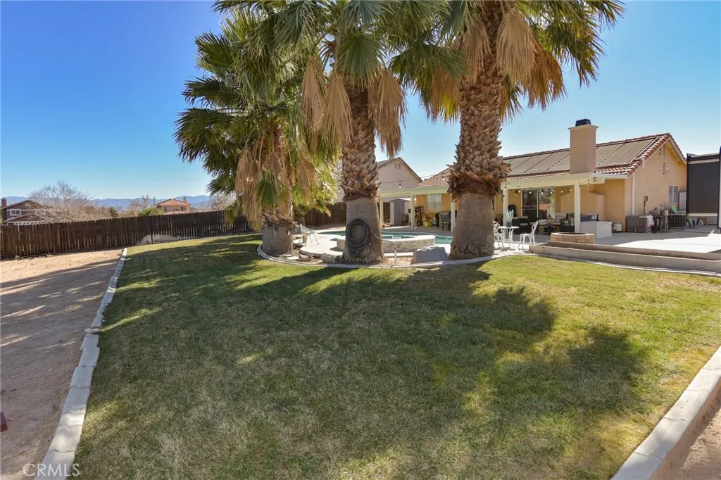 3BR/2BA single-story home in Hesperia. Owned solar, private pool and spa. Built 1991, 2-car garage, no HOA. Approx. 18,000 sq ft lot size. This single-story 3 bedroom, 2 bathroom home offers a functional layout designed for everyday living. Built in 1991, the property has been consistently maintained and reflects long-term care, making it a practical option for buyers seeking space, efficiency, and usable outdoor features. The interior provides a well-kept, comfortable floor plan with natural light and a logical flow between living areas. Room sizes support daily use without unnecessary space, allowing for easy move-in and straightforward upkeep. Energy efficiency is supported by a fully owned solar system that helps reduce monthly utility costs. The home also includes a 2-car garage and shows pride of ownership throughout, with no HOA restrictions to limit future flexibility. Situated on an approximately 18,000 square foot lot, the backyard includes a private pool and spa, a covered patio for shaded outdoor use, and ample yard space for a variety of needs. The outdoor area is fully enclosed and intended for private enjoyment. Located just off Ranchero Road, the home offers convenient access to shopping, dining, and commuter routes while remaining removed from high-traffic areas. The combination of lot size, owned solar, and location supports long-term value and usability.