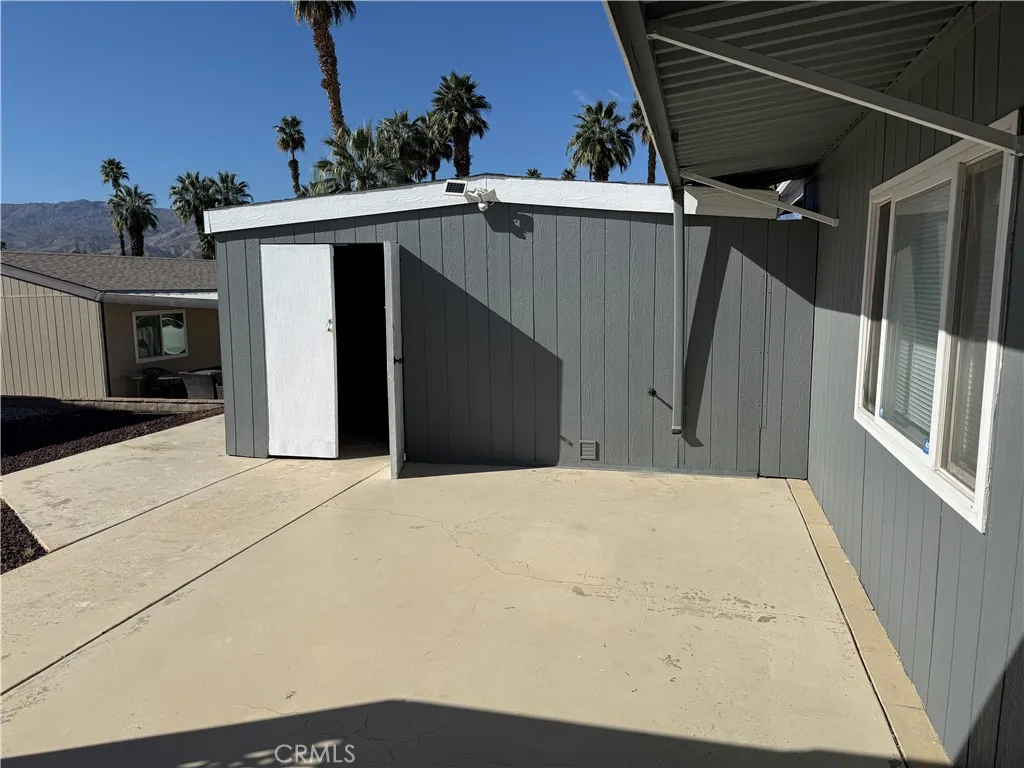 Welcome to Portola Country Club, a 55+ gated property in Palm Desert. This updated home features new interior paint, new flooring, new ceiling fans, new granite countertops, a new backsplash, and select new fixtures throughout. The home offers a spacious living and dining area, good-sized bedrooms, and additional space in the second bedroom for storage or a closet. The laundry room is located in the shed. Residents enjoy resort-style amenities including golf, pools with Jacuzzis, tennis, pickleball, bocce ball, a dog park, and a clubhouse. Conveniently located near shopping, dining, and Eisenhower Medical Center.