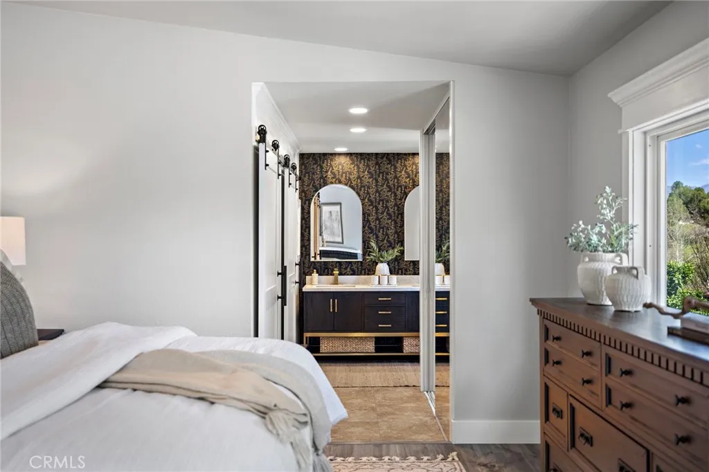 From the moment you arrive, this exceptional four bedroom, three bath residence captivates with a presence that simply feels like the one! The dramatic entry showcases a striking architectural staircase accented by custom wood slats with concealed storage, updated flooring and a statement chandelier that draws the eye upward. The open-concept living and dining areas, designed to maximize natural light, flow effortlessly from the foyer and are highlighted by a beautifully refreshed fireplace with custom built-in cabinetry and shelving, complemented by updated flooringideal for both everyday living and refined entertaining. The kitchen has been completely reimagined with new custom cabinetry, quartz countertops, stainless steel appliances, designer backsplash, upgraded fixtures, and new flooring, offering the perfect balance of style and functionality. A custom wine storage area with wine refrigerator and glass display nook adds a sophisticated touch, perfect for hosting. All bathrooms have been beautifully updated with new vanities, faucets, mirrors, flooring and lighting, along with thoughtful finishes throughout, including custom paneling in the first-floor bath. A well-planned laundry area with custom cabinetry maximizes everyday convenience and smart storage. Each bedroom has been freshly painted and enhanced with custom wood detailing. An oversized secondary bedroom features refined chair rail paneling, while the primary suite offers a serene retreat, highlighted by a beautifully appointed fireplace. The en-suite bath has been fully renovated for elevated comfort and ev