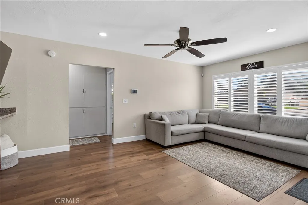 Turn-key Home Sweet Home! This charming, recently modernized single-family home offers upgrades throughout and fantastic curb appeal with true pride of ownership. Features include Tex-Cote Coolwall exterior paint, central A/C & heat, recessed lighting, granite countertops, ceiling fans, hardwood floors, mirrored closet doors, and a beautifully remodeled bathroom. Home also offers interior wood plantation shutters, newly refinished white kitchen cabinetry, and Solar Panels. Equipped with a Fidelis water filtration system throughout entire home. The open-concept layout feels bright and airy with tranquil gray tones, white trim, and wood window coverings. The spacious primary bedroom fits a Cal-King, while the second bedroom is perfect for kids or guests. Enjoy an enormous, updated backyard with room for a pool, room addition, and or ADU. Entertaining-ready with a concrete patio, Alumiwood covered patio with recessed lighting and fan, kids playhouse, shed, orange and lemon trees, and plenty of grass for play and gatherings. A must-see starter home, lovingly updated and ready for its next residents to move right in!