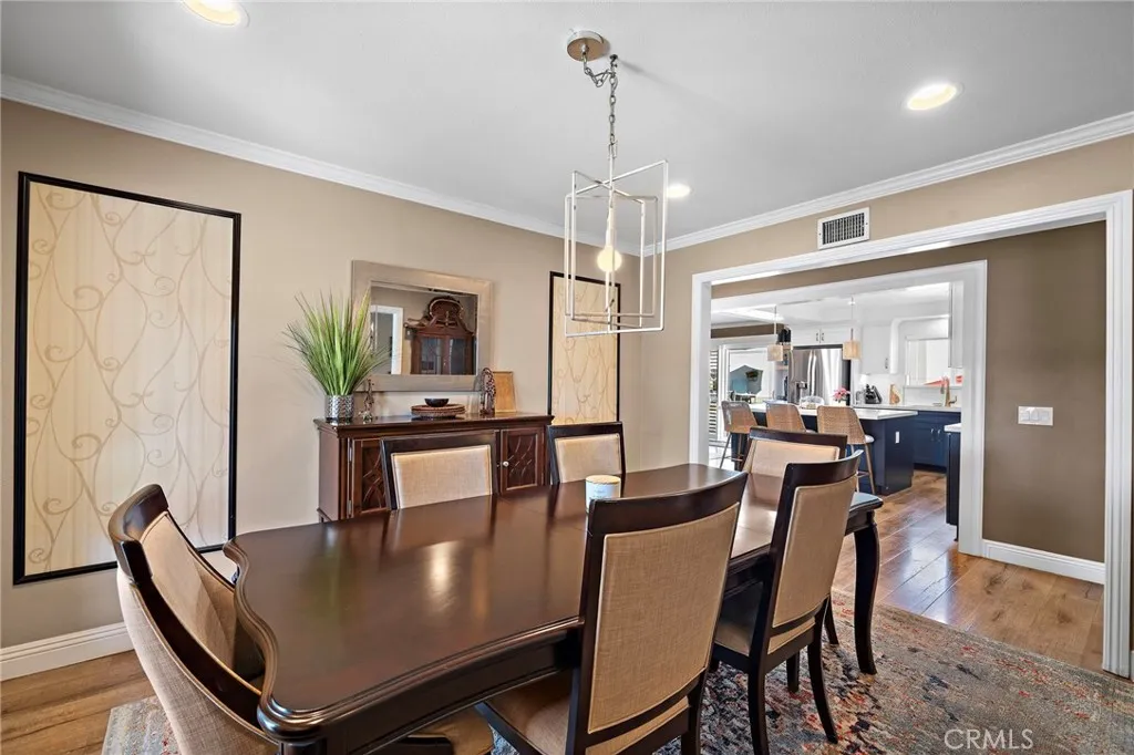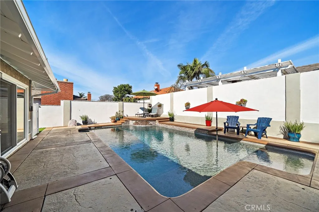 Welcome to 1355 Montevideo, ideally located in the heart of Placentia! This stunning single-story pool home offers 3 bedrooms, 2.5 bathrooms, and approximately 1,982 square feet of thoughtfully designed living space. Welcoming front porch with custom stone that brings you to the elegant double wrought-iron doors. As you enter, the spacious living room features a cozy fireplace and beautiful wood flooring that flows throughout the home. The gorgeous remodeled kitchen is a true showstopper, showcasing custom cabinetry with abundant storage, quartz countertops, a Thor 6-burner range, stainless steel appliances, a large center island, and a walk-in pantry. The kitchen opens seamlessly to the family room, complete with a built-in entertainment center with wine refrigerator, and sliding glass doors with shutters that lead to the backyard. A spacious dining area offers the ideal setting for family gatherings and entertaining. The primary suite is generously sized and features a large closet with custom built-ins and shelving. A stylish barn door leads to the beautifully remodeled en-suite bathroom with dual sinks and a spacious walk-in shower. Sliding glass doors with shutters provide direct access to the backyard retreat. Secondary bedrooms are generously sized and feature sliding mirrored closet doors. The upgraded guest bathroom includes dual sink vanity and granite counter tops adding both style and convenience. Step outside to your private backyard oasis, complete with a sparkling pool with waterfall, above ground spa, covered patio, built-in bar with refrigerator, and firepi