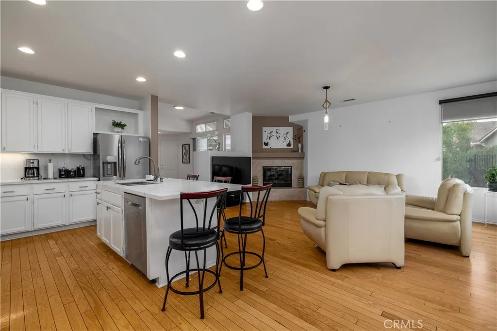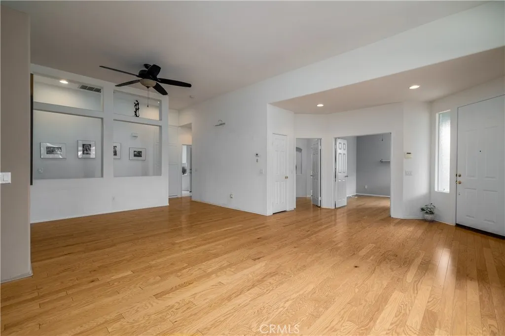Welcome to 29427 Bentcreek Ct, located in the highly desirable 55+ guard-gated Oasis community in Menifee. This beautifully maintained Curaao model offers 2,085 sq ft of thoughtfully designed single-story living with 2 bedrooms, 2.5 bathrooms, and a versatile den/office with double doors. The spacious layout features formal living and dining areas, along with a comfortable family room with fireplace that opens to the kitchen, creating an ideal setting for both everyday living and entertaining. The upgraded kitchen includes a large center island with sink, ample cabinetry, under-cabinet lighting, and generous counter space. A private hallway leads to the guest suite with its own full en-suite bathroom, providing separation and privacy for visitors. The primary suite is generously sized and features dual sinks, a soaking tub, walk-in shower, and a spacious walk-in closet. A convenient indoor laundry room with sink and cabinetry adds everyday functionality. Situated on one of the larger lots in the community, the backyard showcases custom stamped concrete that wraps around the home, mature landscaping with fruit trees, and covered patio areas ideal for relaxing or entertaining outdoors. Living in The Oasis means enjoying resort-style amenities within a beautifully maintained 24-hour guard-gated setting. Residents have access to a 22,500 sq ft clubhouse featuring a banquet room, fitness center, billiards, library, and numerous social clubs and activities, along with a pool, spa, tennis and pickleball courts, and scenic walking paths. The community is adjacent to Menifee Lakes C