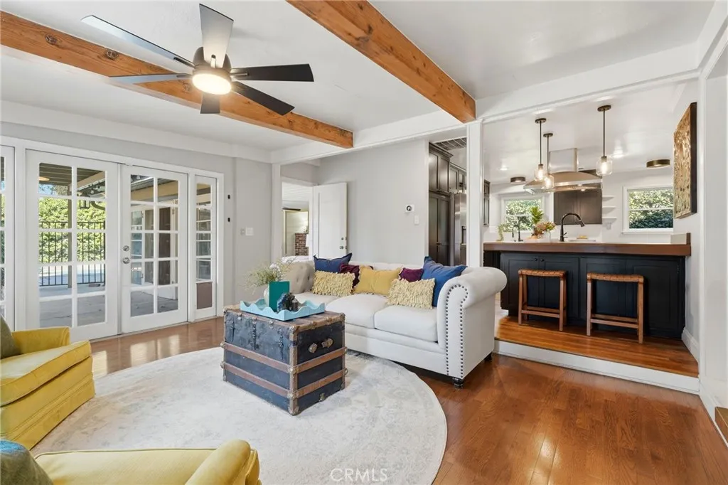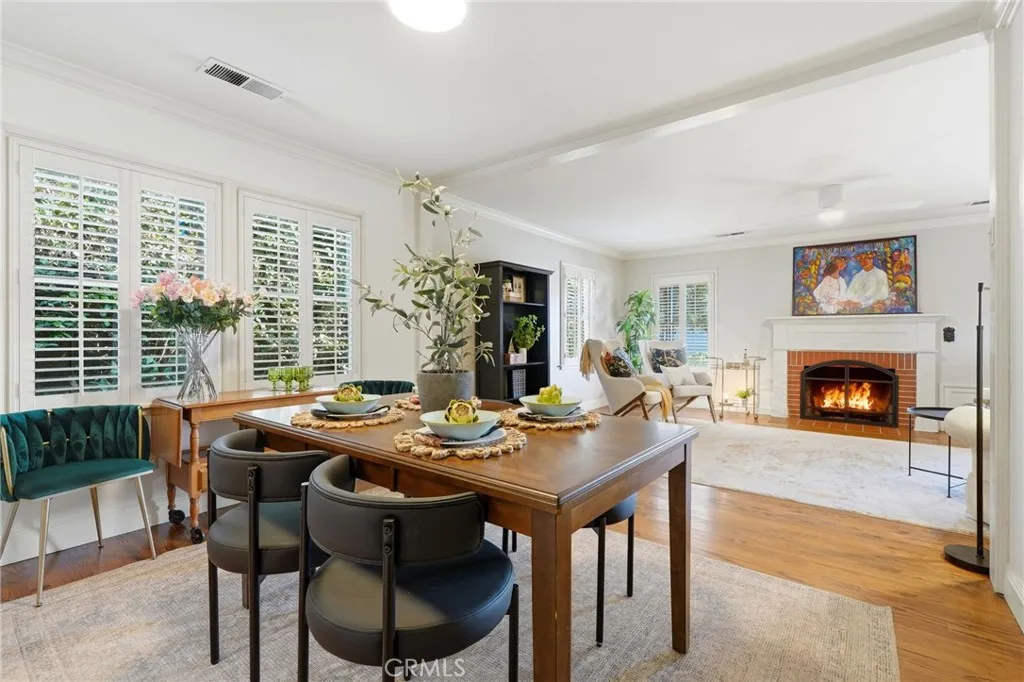Timeless 1940s charm meets modern comfort at this beautiful home nestled in the heart of Visalias beloved Beverly Glen neighborhood. Every space in this home reflects the craftsmanship and character that makes homes in this neighborhood so special - thoughtfully maintained while offering the functionality! Step inside to find rich wood floors, plantation shutters, detailed molding, and abundant natural light throughout. The formal living room with a cozy fireplace and wood hearth flows into a charming dining room with built-in bookcase, while the kitchen features a professional 6-burner gas range, stainless steel appliances, wood bar and countertops, and a built-in dining booth, all opening to a spacious family room with French doors leading outside.The primary suite offers a peaceful retreat with its own brick fireplace, French doors to the backyard, and an updated en suite bath complete with dual pedestal sinks and a custom tile shower. Two additional bedrooms, a dedicated office space, and generous storage provide flexibility for everyday living. Step outside to your own private oasis featuring a built-in pool, covered patio, and mature surroundings ideal for entertaining or unwinding. The detached guest house includes a bedroom area, bathroom, kitchenette, private covered patio, and laundry room, perfect for extended family, visitors, or flexible living arrangements. This is a rare opportunity to own a piece of Visalia charm in one of its most quaint and cherished neighborhoods. Main home square footage is 2,030 according to public records. The ADU is 490 square foot. M