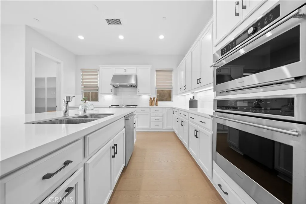 LOW HOA FEE! Beautiful 4-Bedroom Home in Eastwood Village. Built in 2019,this stunning two-story home offers 4 bedrooms and 3 bathrooms and California room in highly desirable Eastwood Village. The open-concept layout features Real wood floors for the whole house, large windows, and kitchen with quartz countertops, full backsplash, stainless steel appliances, and a 6-burner cooktop. A guest bedroom and full bath are located on the first floor, perfect for visitors or multigenerational living. The upstairs features primary suite includes a soaking tub, dual vanities, and walk-in closet. The house also features an attached two-car garage with ample storage space and direct home access for security and comfort. Step outside to a beautifully landscaped backyard with lush greenery, hardscaped seating areas, and plenty of room for entertaining guests or enjoying your own time outdoors. The HOA community had resort-style amenities at a low monthly fee: pools, spa, clubhouse, BBQ areas, tennis/basketball courts, trails, and playgrounds. Close to Woodbury Town Center, top Irvine schools Northwood high ,Dont miss the opportunity to your new home!