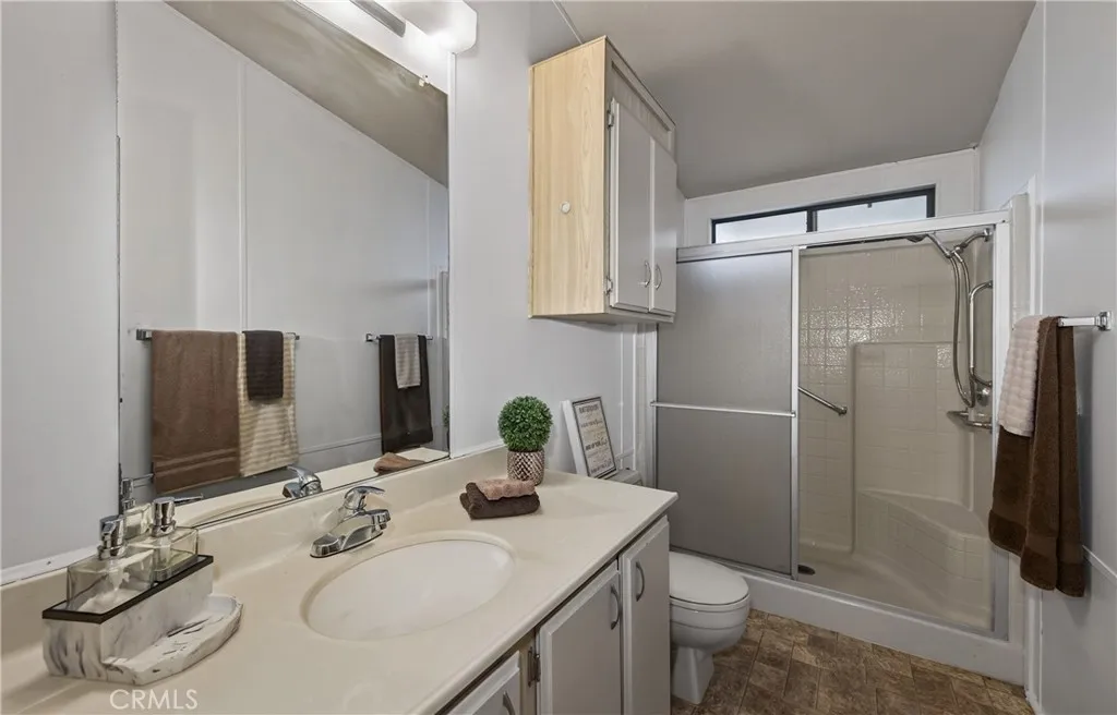 Check out this lovely doublewide home in the gated & desired 55+ age-restricted park of Foothills of Hemet which has new carpet and has been freshly painted. Spacious living & dining area that opens up to a large bonus room which can be used for just about anything your heart desires. Kitchen is light & bright with stainless steel appliances, new vinyl floorig & an abundance of cabinets. Lots of space in both bedrooms, with the primary bedroom having full length mirrored closet doors. Primary bathroom has the convenient full-size walk-in shower with seat & grab bar. Guest bathroom has the shower tub combo for those who like to sit & relax as they bathe. Inside laundry room has more storage than you may know what to do with. Screened in area at front porch for enjoying your morning or evening food & beverages. Backyard is fenced with a block wall & no one behind you where you can enjoy the views of our beautiful local mountains. Long carport with a good-sized shed at the end. The park is clean, quiet, gated and just plain awesome with amenities including 2 swimming pools, spa, pickleball courts, air-conditioned shuffle board court, exercise room, recreation hall w/kitchen, and rooms to enjoy billiards, cards, bingo, crafts & fun planned community dinners or activities. Ask about the park's RV parking area. Commuter friendly, and close to shopping & restaurants.