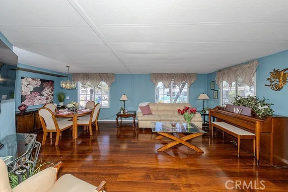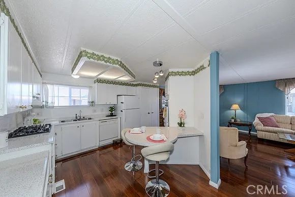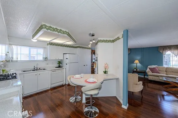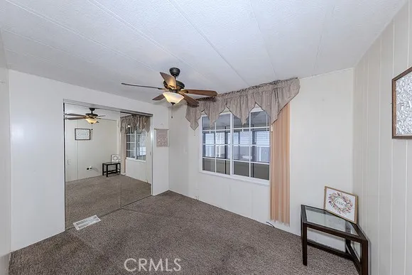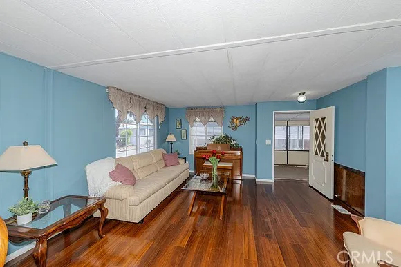 Welcome to the lovely 55+ Villa Nova Community. This beautiful single-story home offers 1,344 square feet of living space, featuring three bedrooms and two bathrooms. The living room, kitchen, and hallway have been upgraded with high-quality laminate flooring. This home features dual-pane windows, upgraded gas stove, new dishwasher, New garbage disposal and air conditioning/heating system for year-round comfort. The kitchen provides ample cabinet and counter space, including seating for casual dining, while the living room includes an adjacent formal dining area. The kitchen counter top have a new fresh coating, bathroom also have a fresh coating in the showers and on the counter tops. At the entrance, you will find an enclosed patio perfect for relaxing in any season. The utility room, which houses the washer and dryer along with extra storage, has its own separate entrance and provides convenient access to the carport. The exterior offers side-by-side parking and two storage sheds. Situated on a corner with a lot for added privacy, the property features low-maintenance rock landscaping and beautiful roses that surround the front.