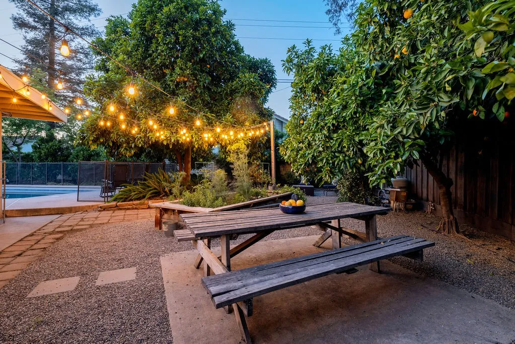 Welcome to 1264 W. Celeste Ave a stunning, light-filled Mid-Century Modern home nestled in one of Fresno's most sought-after neighborhoods. Offering 2,675 square feet, 4 bedrooms, and 2.75 baths, this exceptional property has been thoughtfully updated while preserving its timeless architectural charm. Beamed tongue-and-groove ceilings, skylights, and expansive walls of glass create a seamless connection between indoor and outdoor living. Step inside to a grand living space bathed in natural light, featuring oversized picture windows, a natural gas fireplace, and serene views in every direction. Designed to be the heart of the home, the spacious kitchen offers a breakfast bar, modern appliances, open shelving, a walk-in pantry, and original Old Fresno'' tile. From here, you'll enjoy a bird's-eye view of both living areas and the sparkling pool beyond. The dining room provides a warm and inviting setting to gather and unwind, complete with a wood-burning fireplace and built-in shelving.Retreat to the expansive primary suite, where a spa-like ambiance awaits. This private sanctuary features a beautifully updated bath, multiple closets, French doors leading to the backyard, and its own split-unit heating and cooling system for personalized comfort. Additional generously sized bedrooms offer ample closet space and picturesque views of the outdoor landscape. Outside, your California lifestyle comes to life. Take a refreshing dip in the large pool beneath mature shade trees, host dinners al fresco on the patio, or cultivate your farm-to-table dreams with a raised garden bed and fr