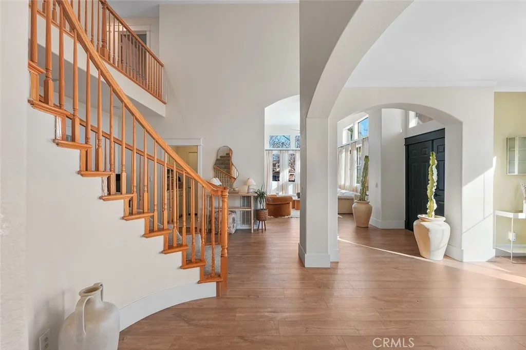 Highly upgraded pool home is priced to sell! This stunning home has been thoroughly updated inside and out and features a massive backyard with a brand-new sparkling pool and spa! And inside the home is pure eye candy, boasting new Quartz countertops throughout, luxury vinyl plank flooring, stainless steel appliances, sink fixtures, hardware, custom lighting, newer windows, paint, A/C unit, whole house fan, and more! The modernized kitchen hits all the marks, with farm sink, gorgeous warm hue Quartz countertops, and designer touches such as the chevron backsplash and soft-bronze finished hardware. From there, the kitchen connects seamlessly to the breakfast area and family room with wood-burning fireplace, creating a cozy, but open main living space. Across the hall is an updated bathroom, a bedroom, a larger formal dining area, and a light-filled, open living room, all illuminated by custom, updated light fixtures that add to the ambiance throughout. Head up the impressive staircase to a spacious loft/bonus room, perfect for a kids playroom, media room, or easily converted fifth bedroom. The primary bedroom offers extra flex-space and built-in storage, suitable for a home office, gym, or media room. The primary bathroom features a large soaking tub, a separate shower, and a large walk-in closet. There are two more bedrooms and a bathroom upstairs, all tastefully updated. The backyard is a dream come true where youll get to enjoy the SoCal sun in your new pool and spa with top-of-the-line ozone filtering, a large Alumawood-covered patio for lounging and dining under the sha