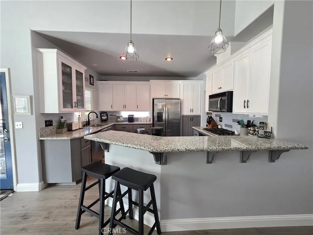 Welcome to this beautifully updated 4-bedroom, 2-bathroom home with over 2,000 sq ft of living space including an attached 3 car garage! Recently painted inside and out with updated flooring throughout, this home features a spacious kitchen with granite countertops, stainless steel appliances, a raised bar for additional seating, and plenty of cabinet space. Enjoy a formal dining room for gatherings and a cozy living area with a custom fireplace. The individual laundry room adds convenience. Step outside to your private backyard oasis with a pool and built-in deck, fully fenced and perfect for pets. Front yard offers great curb appeal plus RV parking space. Additional highlights include garden sheds for extra storage and SOLAR for energy efficiency! Buyers to verify any and all information to their satisfaction.